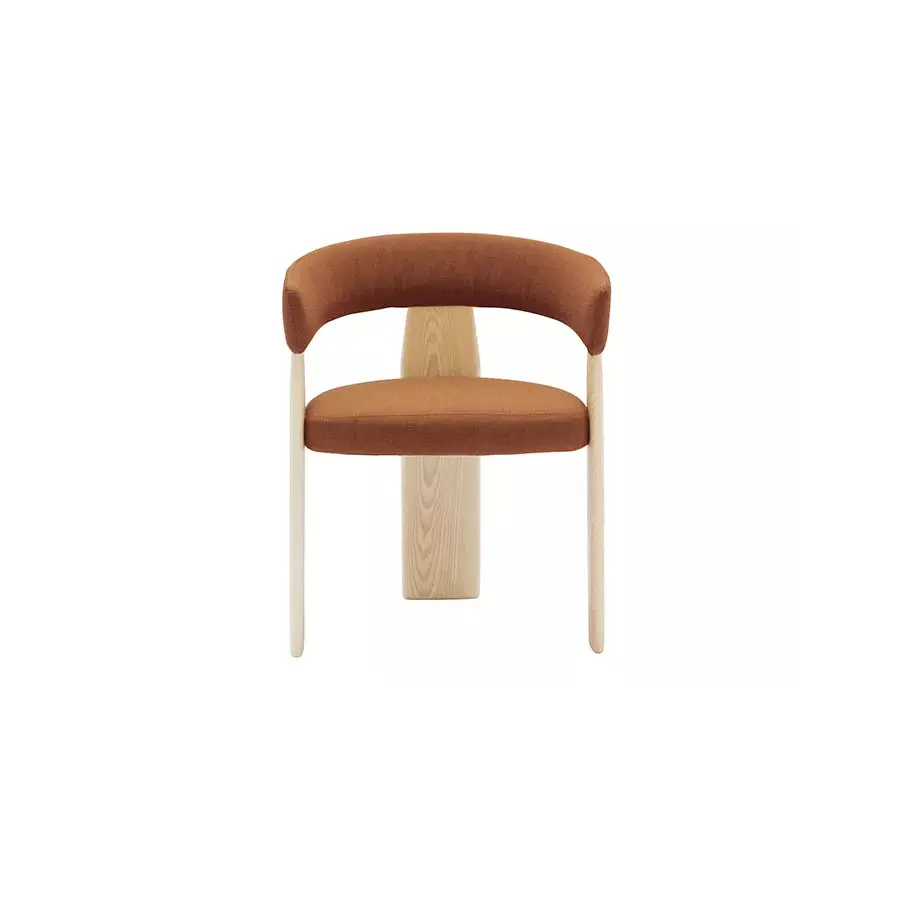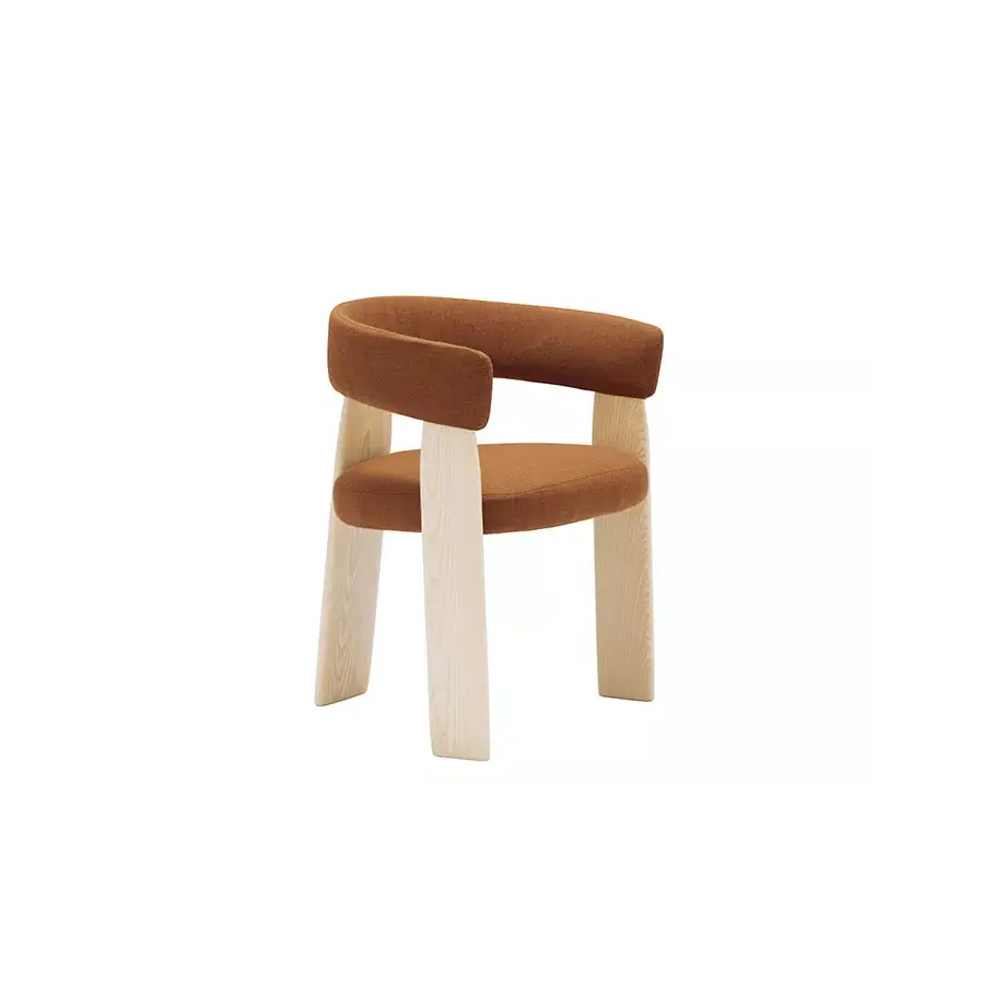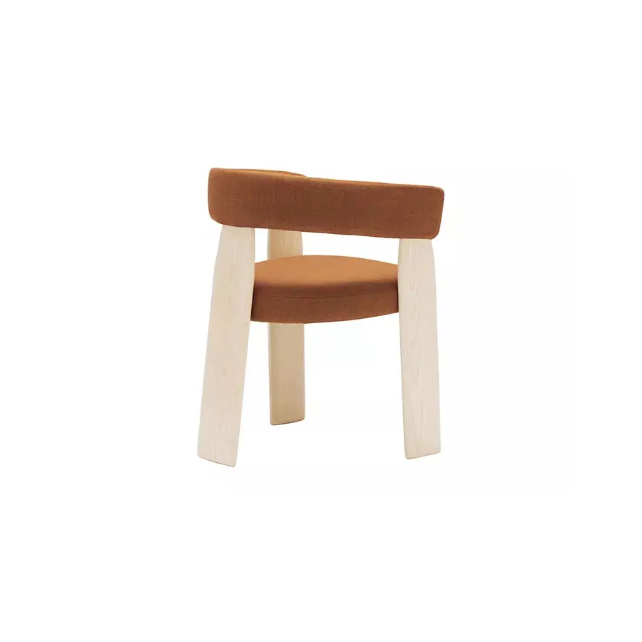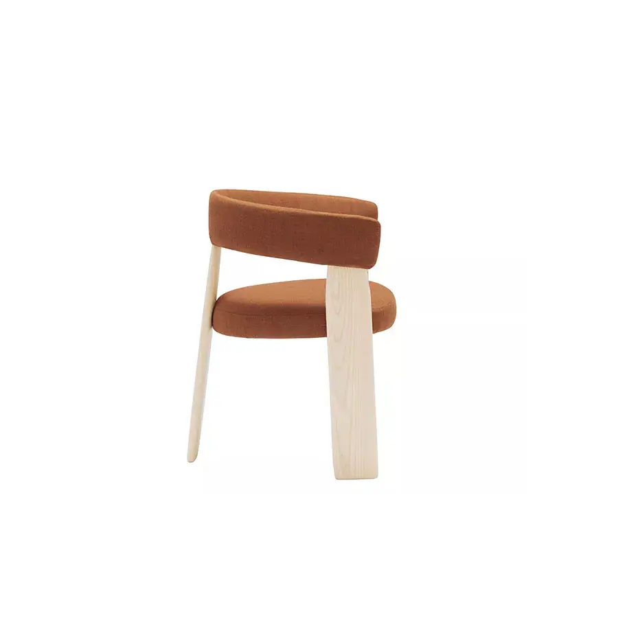 Inspirada con el diseño de los años 70 y con una cierta influencia del sentimiento y estado de ánimo japonés, nace la colección Oru. Un diseño audaz en el que se conjuga la sorprendente arquitectura de 3 pies. La colección Oru ofrece en versión de butaca, silla y taburete, cuyo asiento y respaldo van tapizados con tejido reciclado. Es una pieza ideal para su uso en residencias y espacios hosteleros.