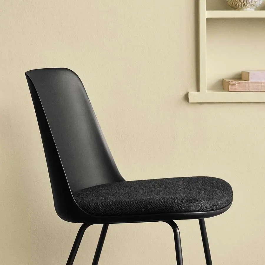 La silla Rely es una elegante muestra de diseño vanguardista y respetuoso con el medio ambiente. Puede realizarse con una estructura elaborada con plástico 100% reciclado, con un asiento tapizado en tela a juego o en contraste, o completamente tapizada. La estructura puede ser metálica, con ruedas, o en madera.