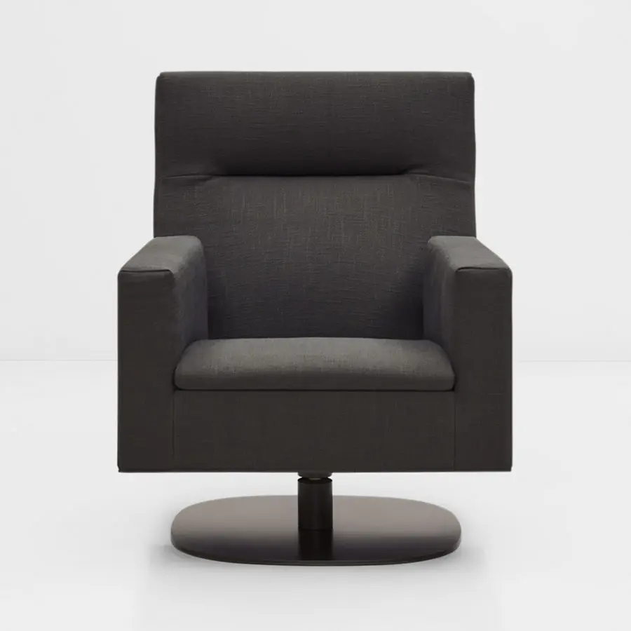 Oslo se caracteriza por el contraste de su alzado lateral, donde la inclinación del respaldo se encuentra con el perfil rectilíneo del brazo. Para reforzar la ergonomía, el diseño dibuja una suave hendidura donde reposa la espalda, facilitando el apoyo de la cabeza. Tapicería totalmente desenfundable. En piel, cojín de asiento desenfundable.