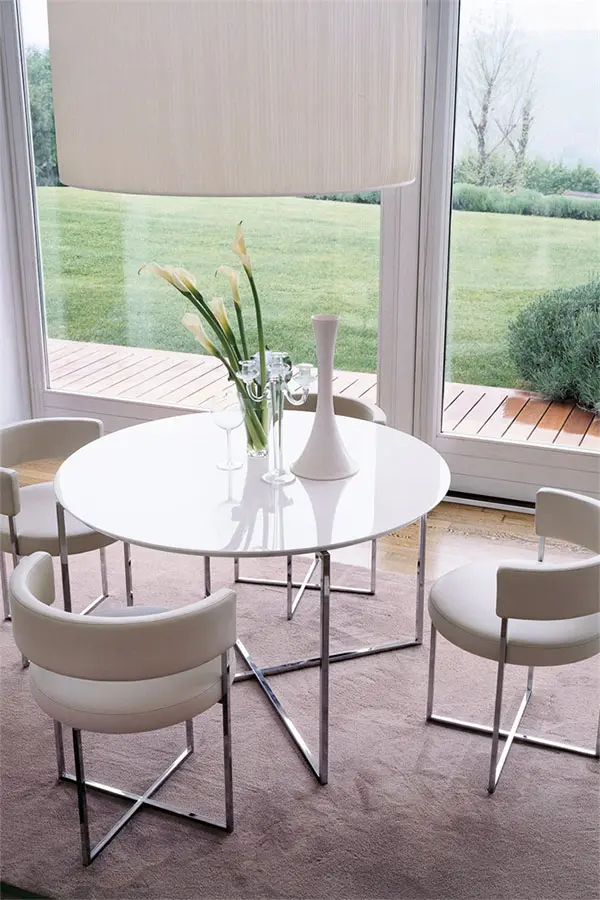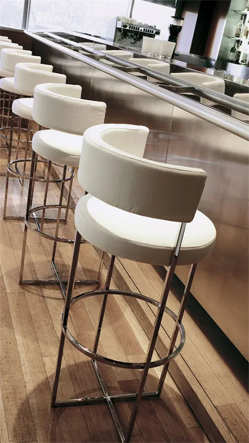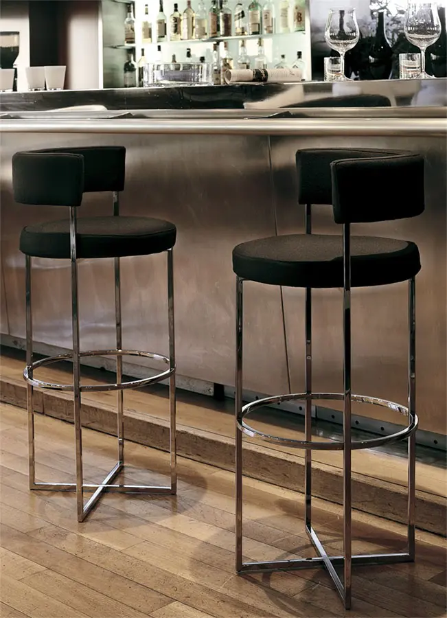 Taburete con estructura en metal y revestimiento en las telas de la colección. Posibilidad de hacerla en silla y en muchos acabados.