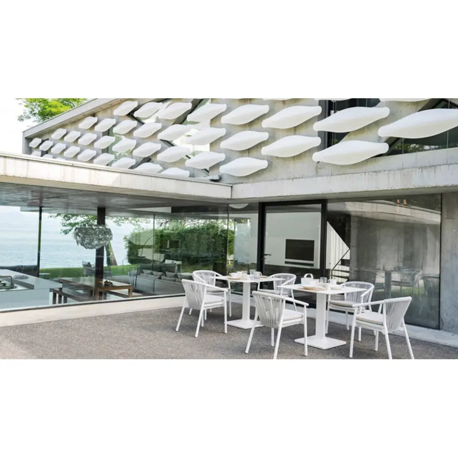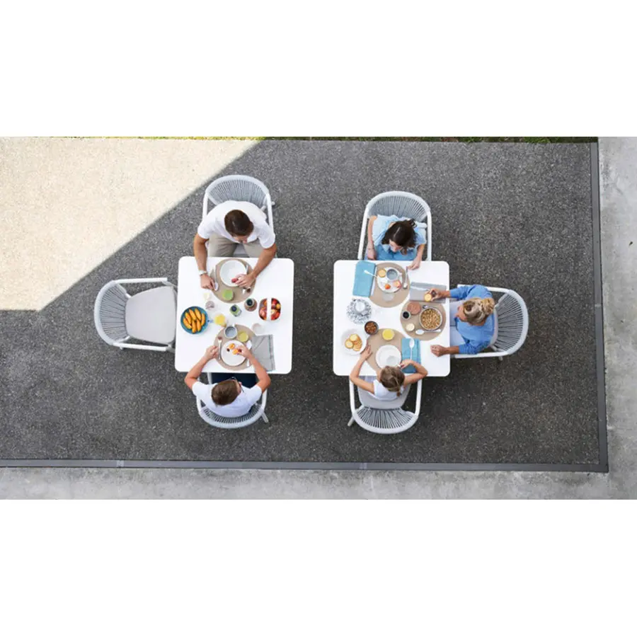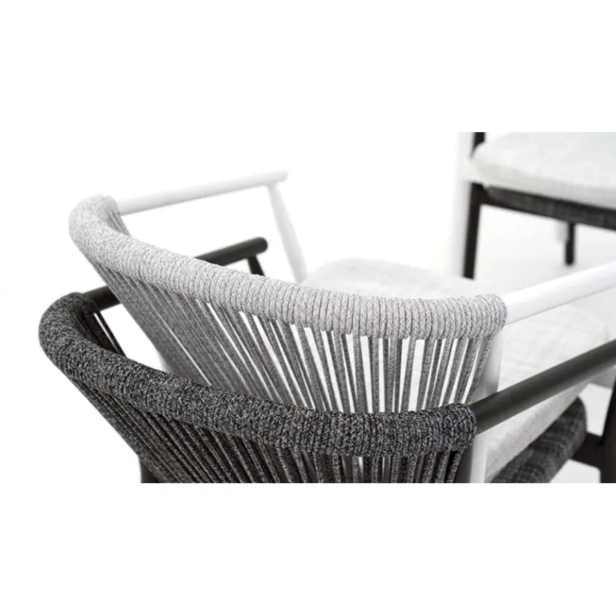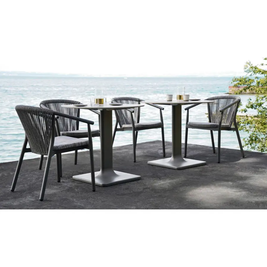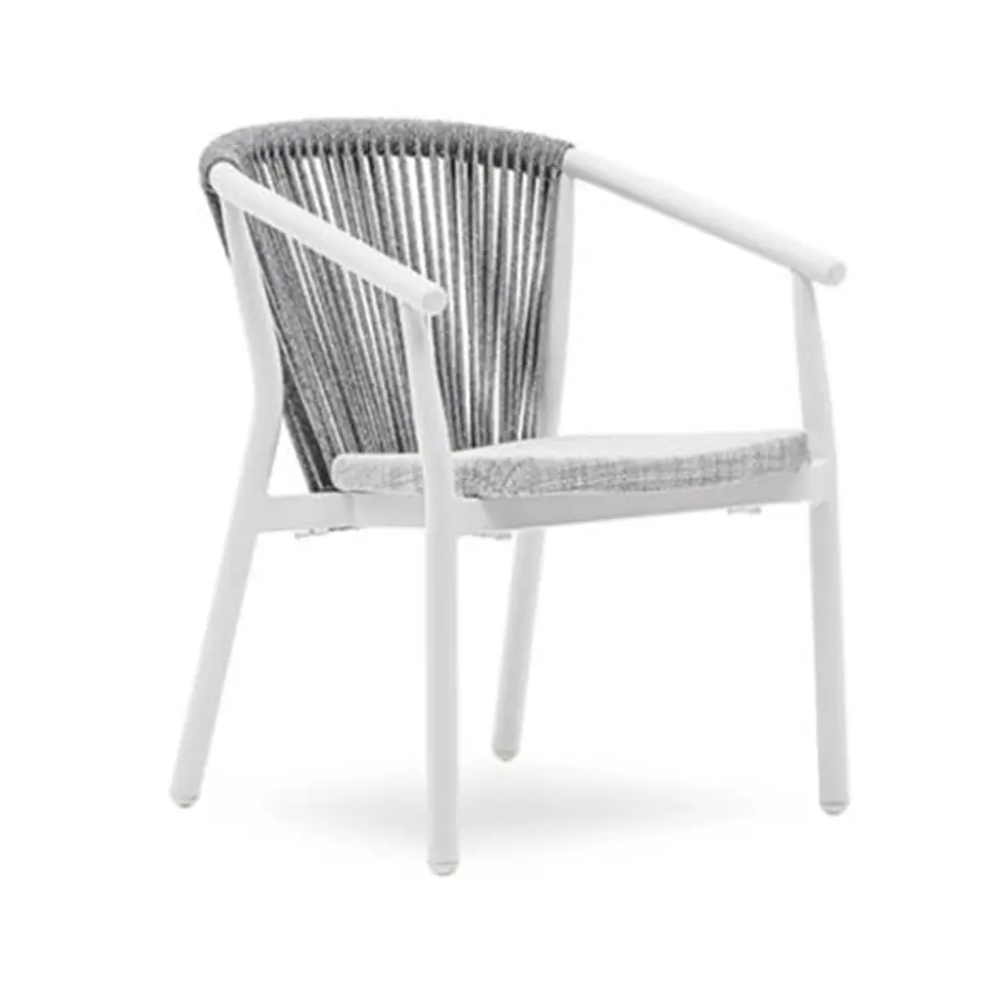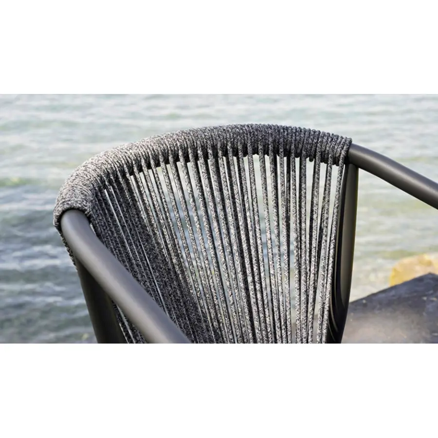 Sillón con estructura de aluminio con recubrimiento en polvo, asiento en malla técnica de PVC, llamado VAR # TEX, una patente exclusiva de Varaschin, respaldo en cuerda sintética VAR # TEX.
