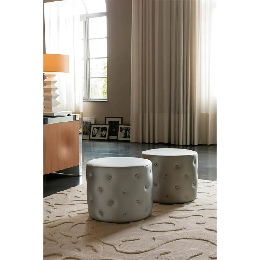 Puff revestido en telas y pieles de la colección. Diametro 52x46H