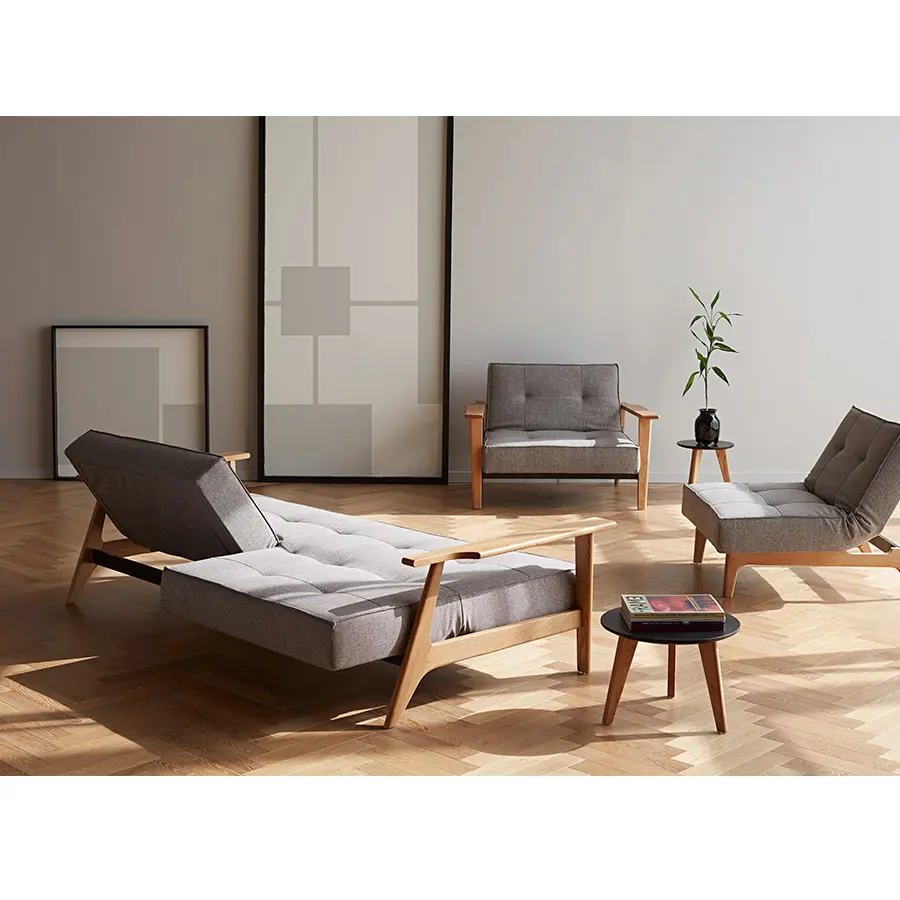 El sofá cama Splitback Frej de Innovation Living es un ejemplo impecable de cómo el diseño escandinavo puede combinar funcionalidad inteligente, estética depurada y máxima versatilidad. Con su sistema de respaldo dividido (de ahí su nombre, Splitback), permite múltiples posiciones independientes para cada respaldo: sentado, reclinado o completamente horizontal. Esto lo convierte en una solución flexible tanto para el descanso diario como para improvisar una cómoda cama para invitados.