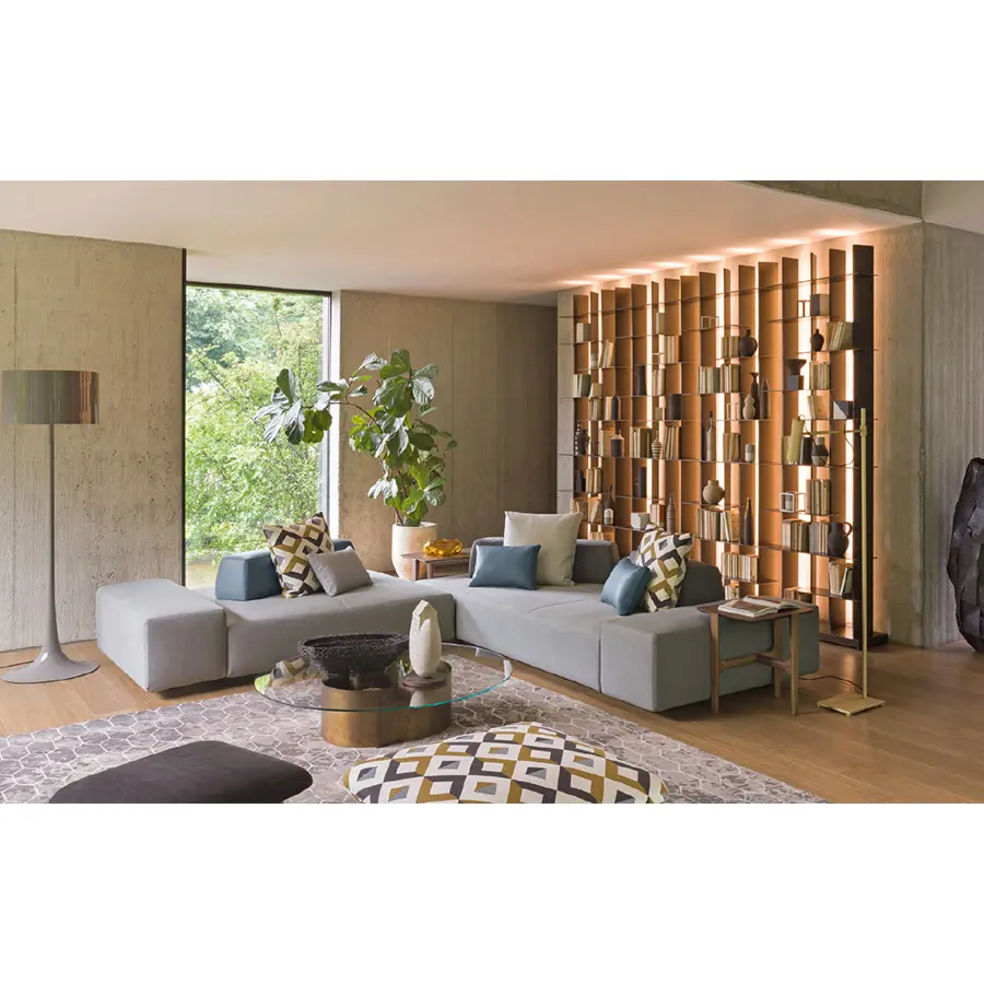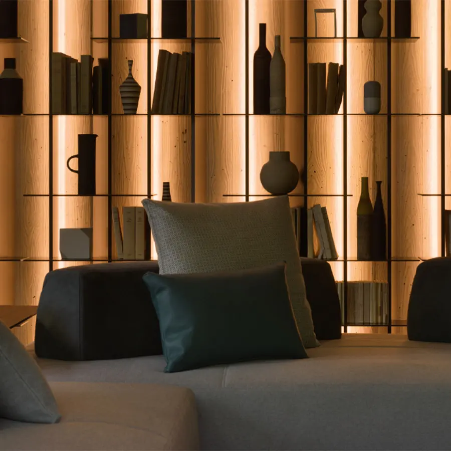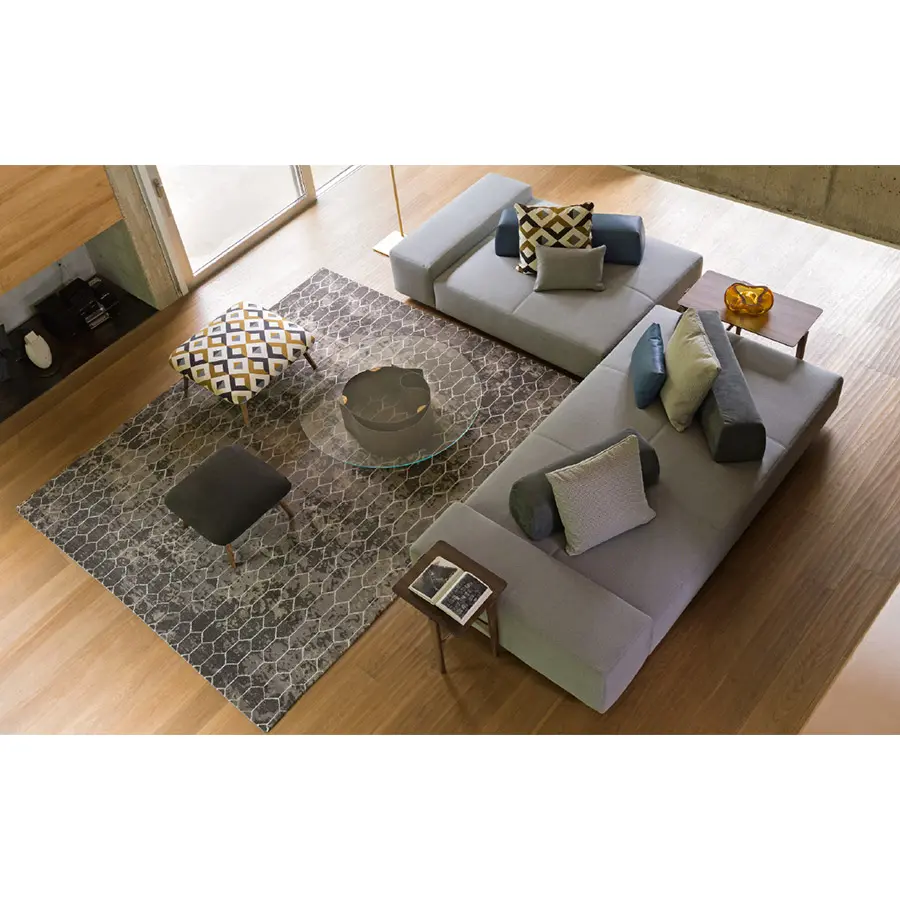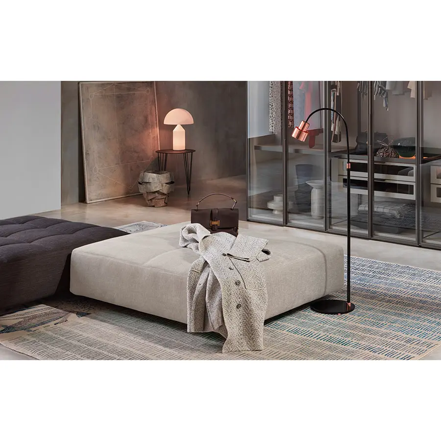 Sofá componible que introduce un concepto de uso dinámico y multifuncional, ideal para acoger nuevos estilos de vida.