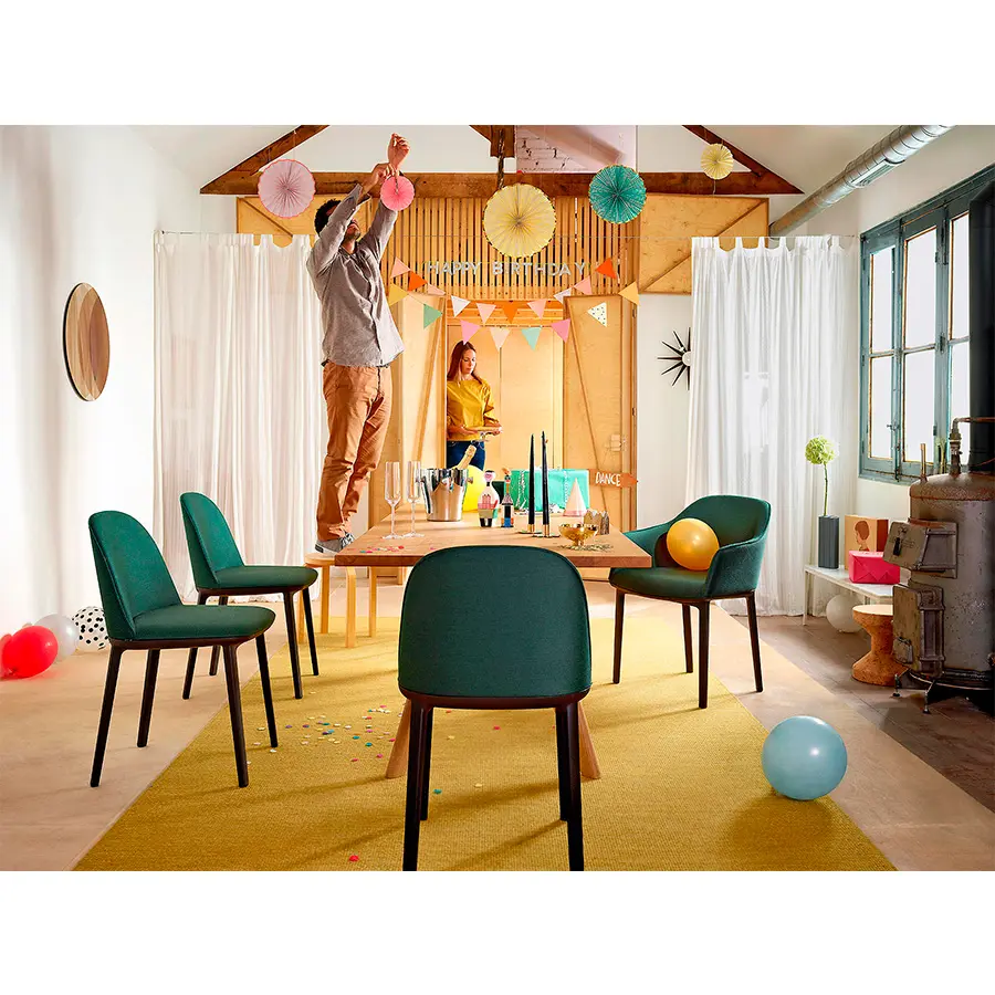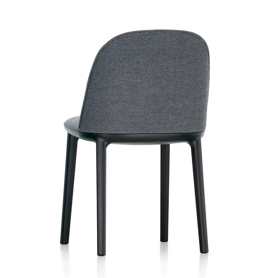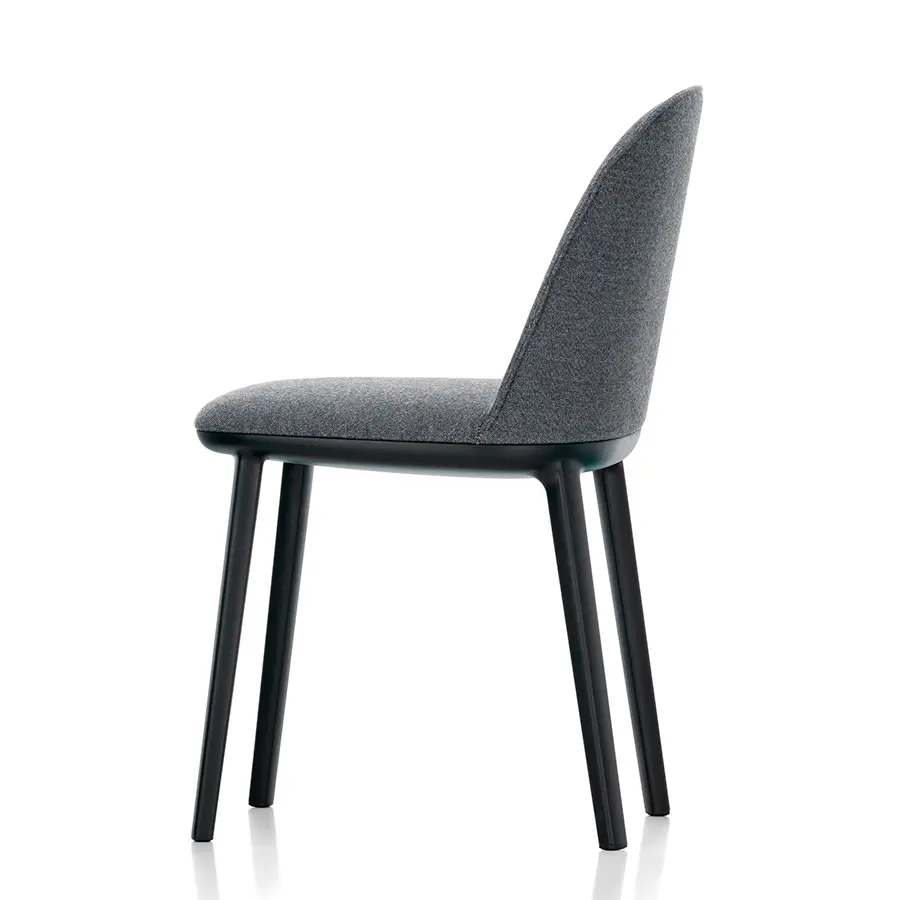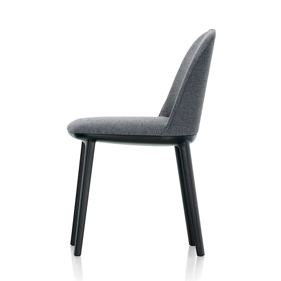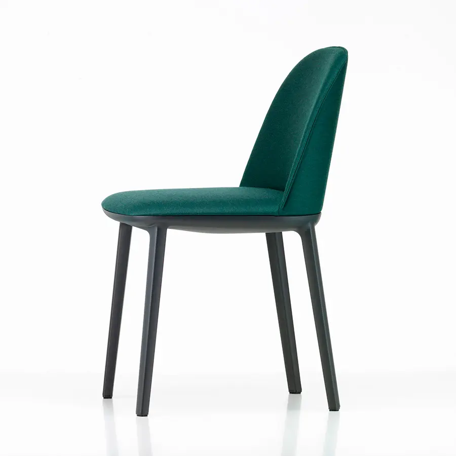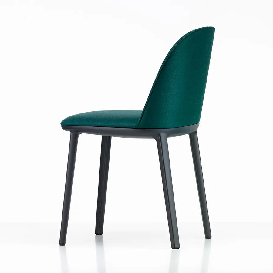 La Softshell Side Chair, cuyos suaves contornos están definidos por un agradable acolchado, tiene un asiento extraordinariamente cómodo y un tamaño compacto: las varillas verticales ocultas en la parte superior del respaldo ofrecen flexibilidad y una notable libertad de movimientos, así como un extraordinario confort incluso cuando se está mucho tiempo sentado. La Softshell Side Chair cuenta con una base de cuatro patas de plástico resistente que acentúa la discreta elegancia de su diseño. Gracias a su gran parecido, la Softshell Side Chair y la Softshell Chair pueden combinarse perfectamente en la misma mesa. Ambas sillas están disponibles en las mismas tapicerías de tela o cuero y en una amplia gama de colores.