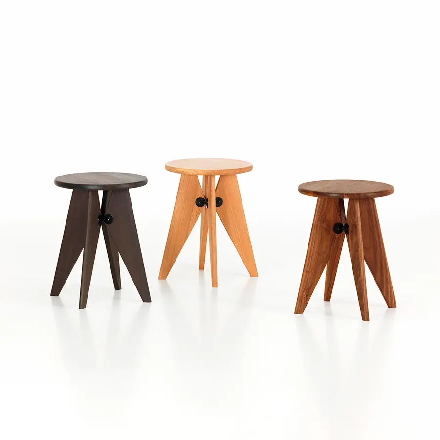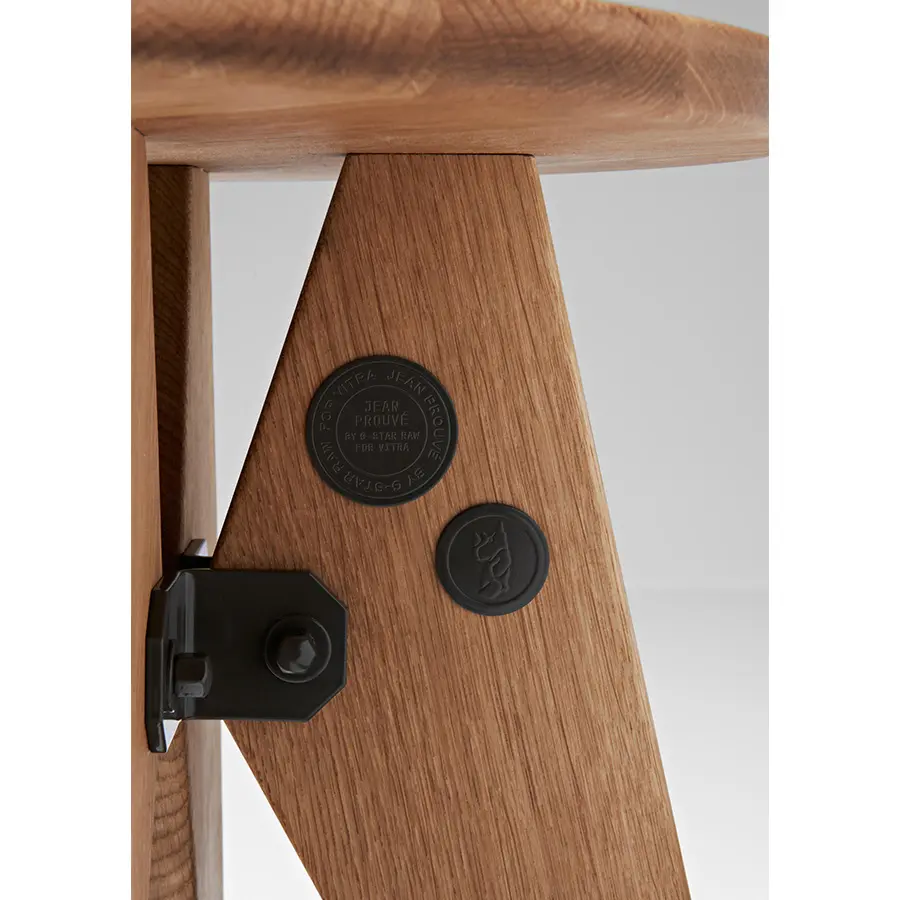 El taburete Solvay es un taburete de madera maciza sencillo y robusto en el que se aprecia a primera vista la firma del diseñador: sus claros principios estructurales pueden encontrarse a lo largo de toda la obra de Jean Prouvé. Gracias a su asiento nivelado y plano, el Tabouret Solvay también puede utilizarse como pequeña mesa auxiliar.