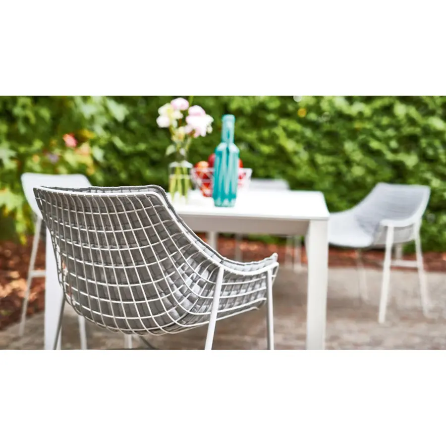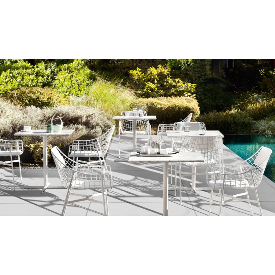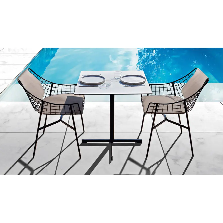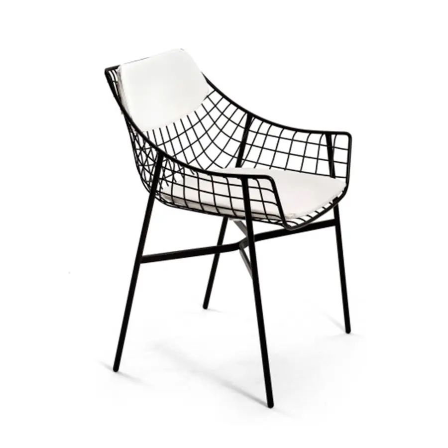 La rejilla de acero (que puede ser cromada o con recubrimiento en polvo) y la elección de telas de colores brillantes hacen que estas sillas sean ideales para bares para jóvenes o restaurantes familiares.
