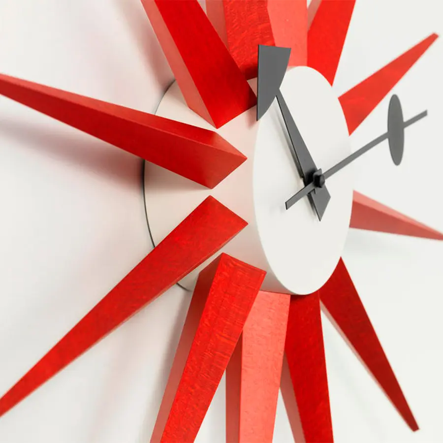 En 1947, el diseñador americano George Nelson recibió el encargo de crear una colección de relojes. Después de estudiar la forma en que la gente utilizaba los relojes, Nelson llegó a la conclusión de que la hora se podía leer según la posición relativa de las agujas, lo que permitía prescindir de los números. Además, como la mayoría utilizaba relojes de pulsera, supuso que los relojes de pared habían pasado a ser elementos decorativos de los interiores.