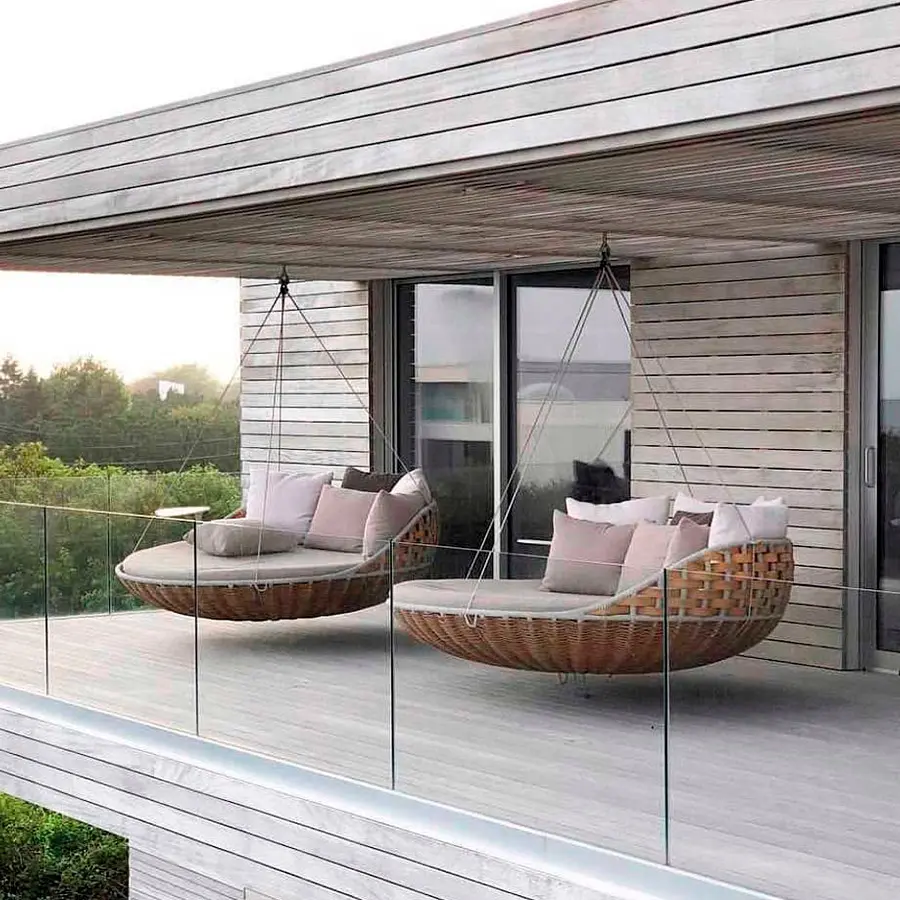 Disponible en tejido de color Natural, SWINGREST incluye una cortina de tela opcional, perfecta para aportar sombra y privacidad sin perder la visión del exterior.
