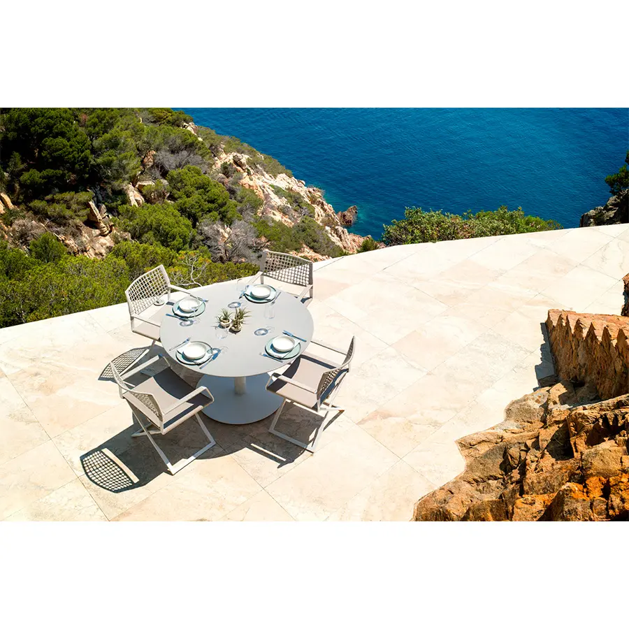 La capa de esmalte hace que la mesa sea resistente al agua, al calor, al hielo, a los rayos UV y a las manchas. Esta mesa atemporal está disponible en varias alturas y tamaños y combina muy bien con diversos diseños de la colección de Tribù.