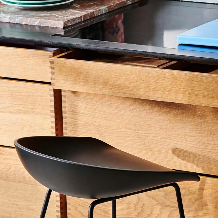 El taburete AAS 38 diseñado por Hee Welling para la firma escandinava Hay cuenta con infinidad de variedades. Dentro de la colección About a Stool podemos encontrar distintos colores y tonos de madera, versiones tapizadas, patas en madera o metal, y dos alturas para adaptar o bien a las barras de cocina o a las mesas de bar.