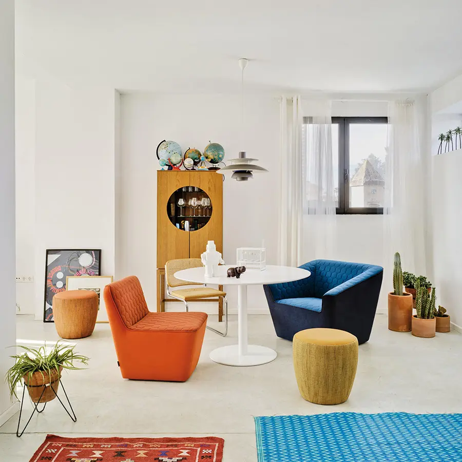 Tea es la consecuencia de reclamar a un placer estético que se percibe por la vista y el tacto; de una intensa búsqueda para despertar emociones en el usuario. Para ello Sancal ha contado con el EstudiHac de José Manuel Ferrero, quien ha proyectado una colección de asientos inspirada en el momento del té. EstudiHac propone combinar texturas y materiales al más puro estilo british.