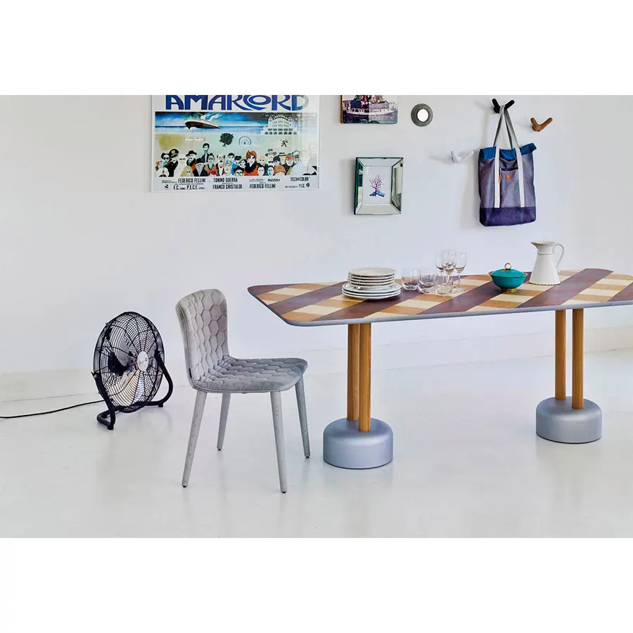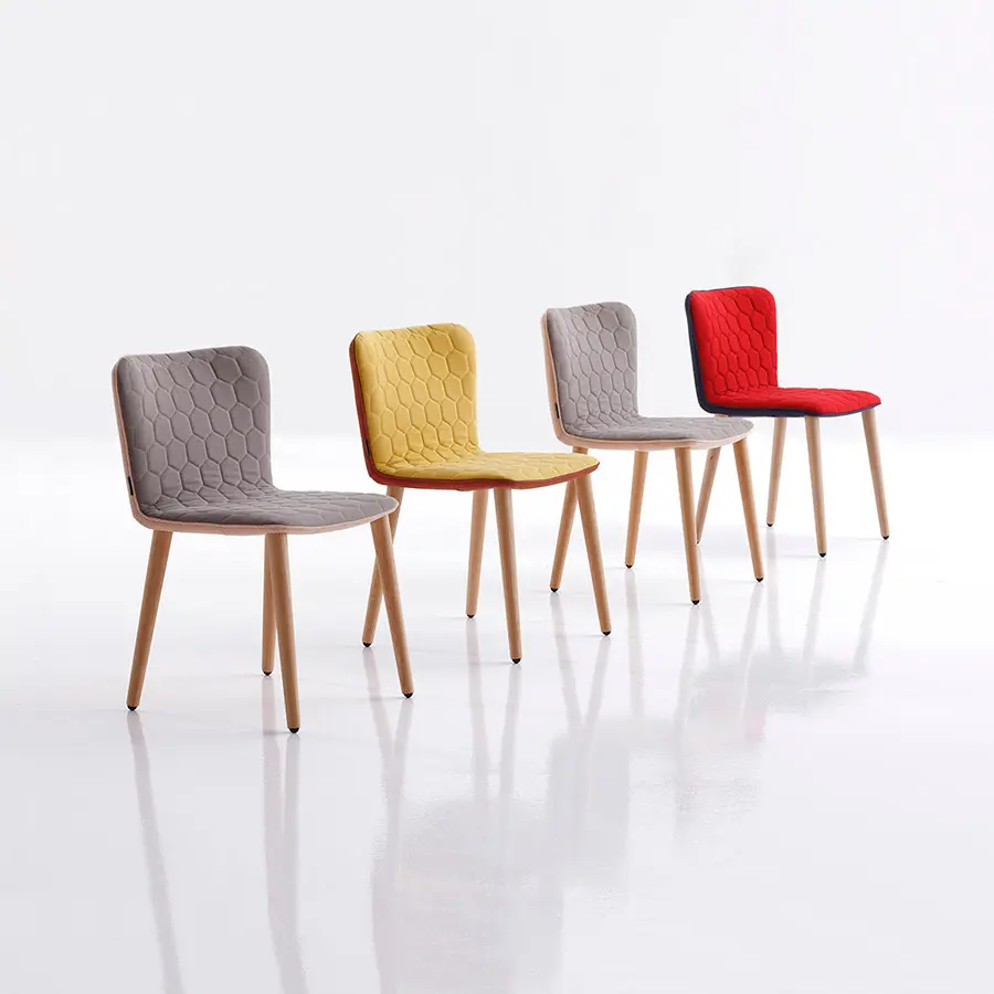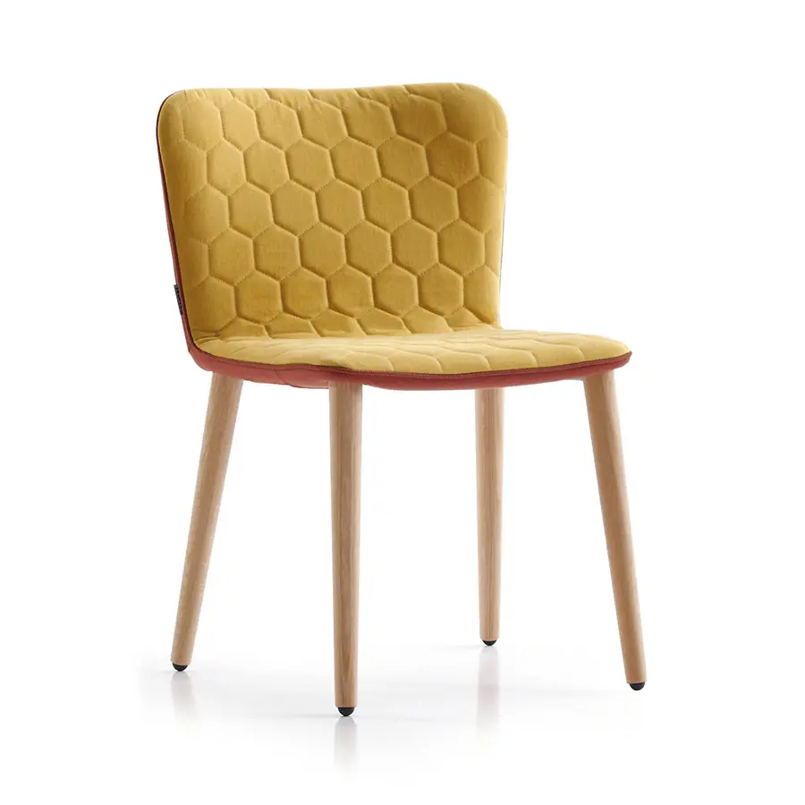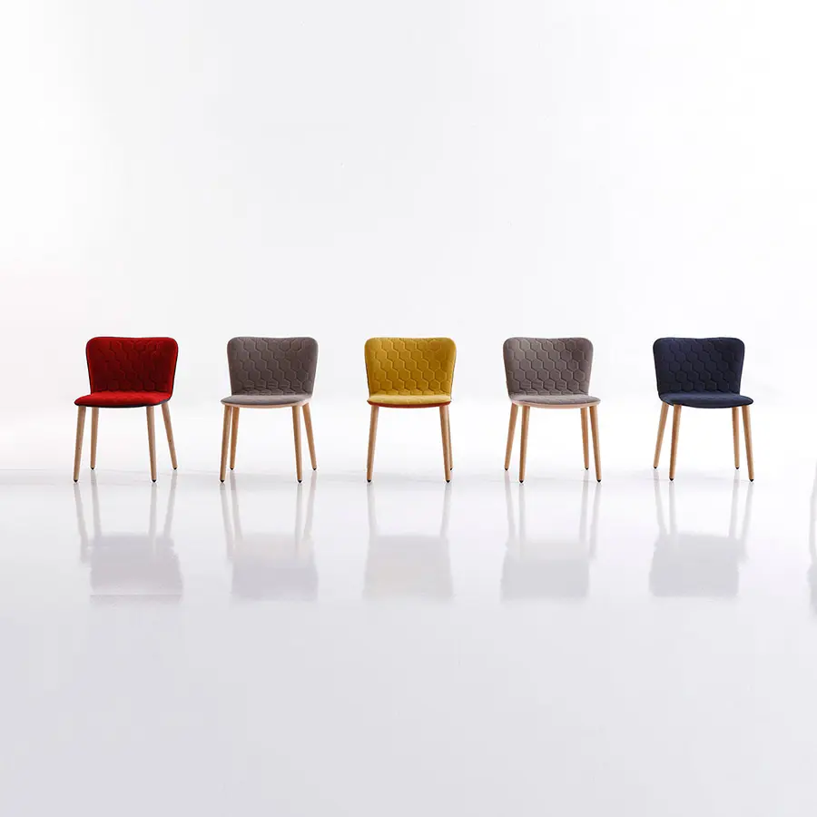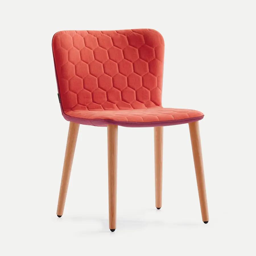 José Manuel Ferrero, ha reducido la butaca Tea a su mínima expresión. El resultado: una ligera y mullida silla con esbeltas patas de roble. La forma curvada del respaldo favorece una postura ergonómica y proporciona una sentada de larga duración. Su delgada estructura es sólida y esponjosa gracias al poliuretano inyectado. Al igual que el resto de piezas de la colección Tea, las sillas incorporan el acolchado hexagonal y la posibilidad de crear piezas bicolor. Las patas también están disponibles en haya.