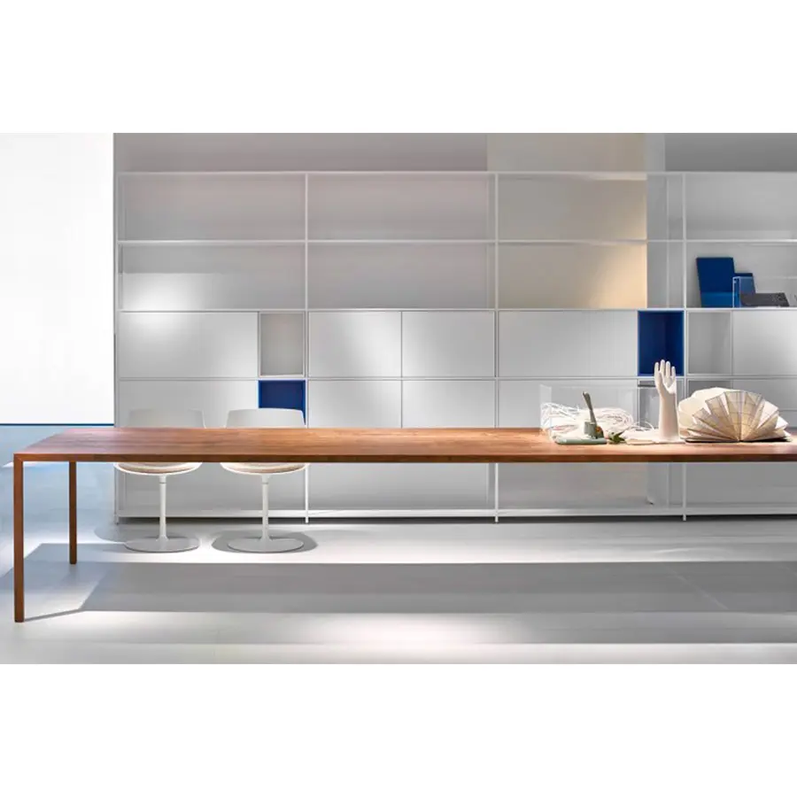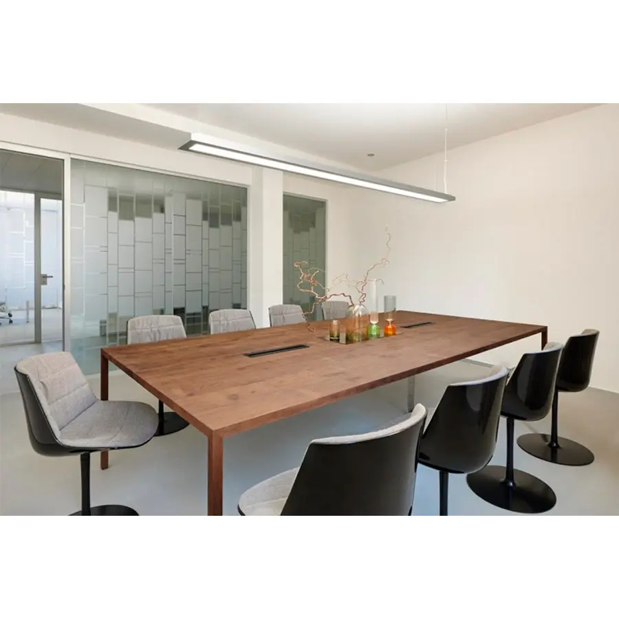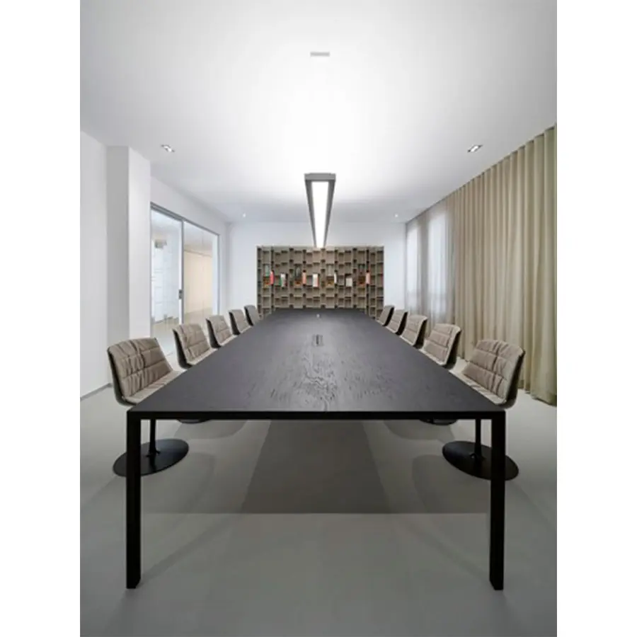 La posibilidad de insertar la PUERTA DE COMPARTIMIENTO DE CABLES y su gran tamaño hacen que el material tenso sea adecuado para lugares de trabajo, donde las reuniones son tantas y la necesidad de acomodar a más personas alrededor de la mesa es frecuente.