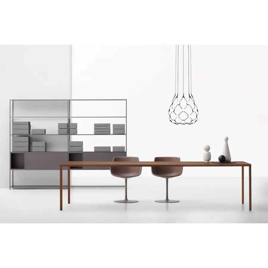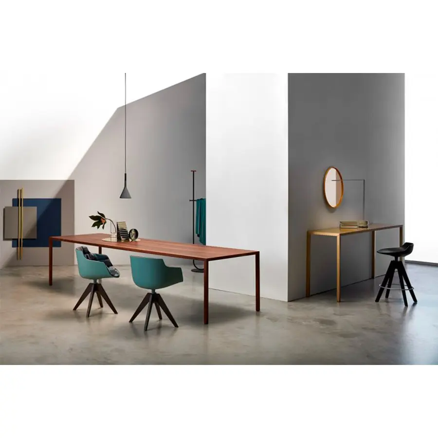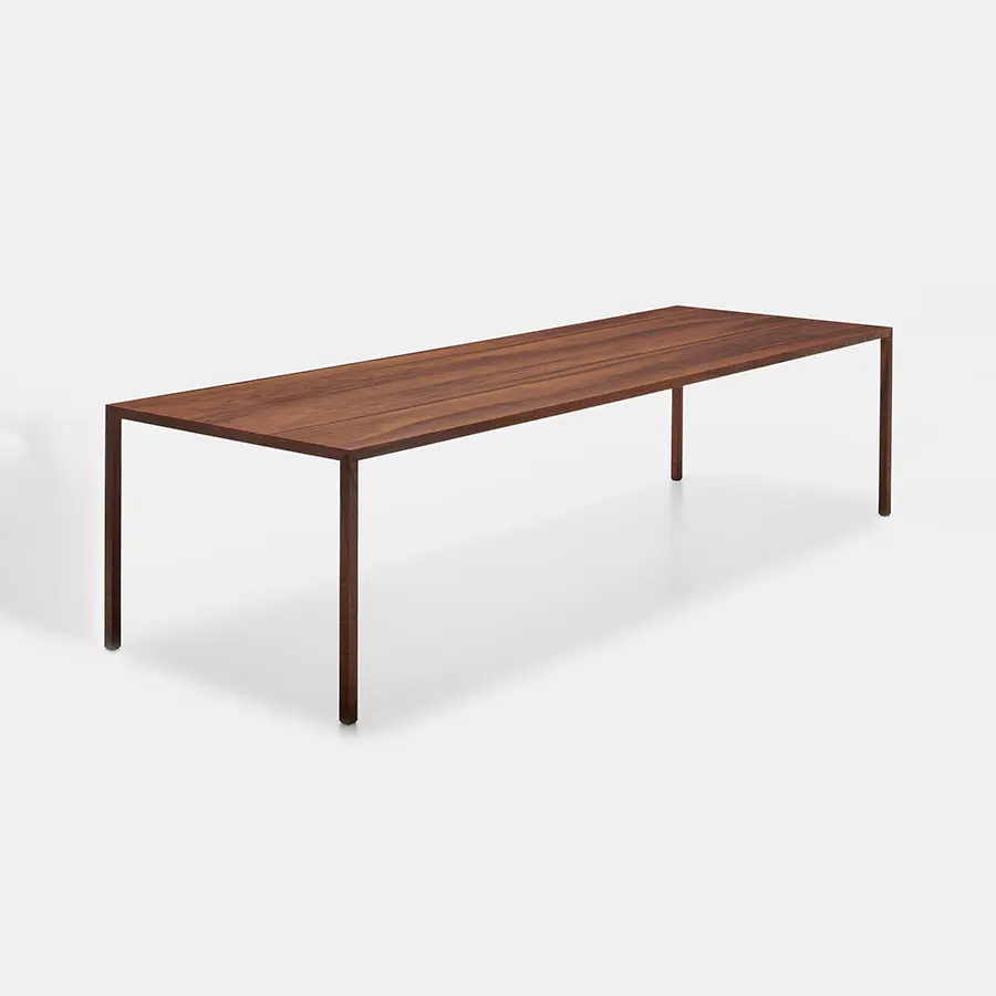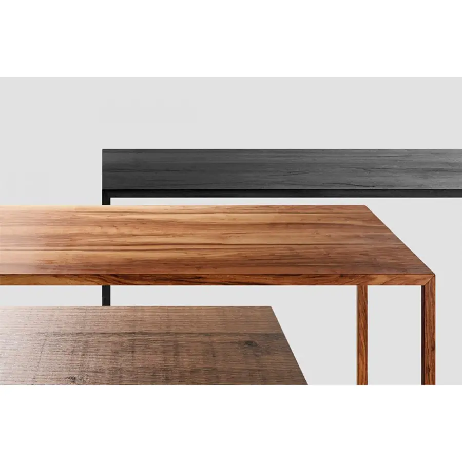 «Una belleza inteligente, resultante de un pensamiento y un saber hacer capaces de transmitir una emoción profunda a través de una sabia acentuación de las peculiaridades de los materiales utilizados». Piergiorgio Cazzaniga describe de esta manera Tense Material, una colección de mesas disponibles en 5 alturas y 36 tamaños, capaces de alcanzar grandes dimensiones, hasta 4 metros de largo, manteniendo siempre una tensión superior perfecta.