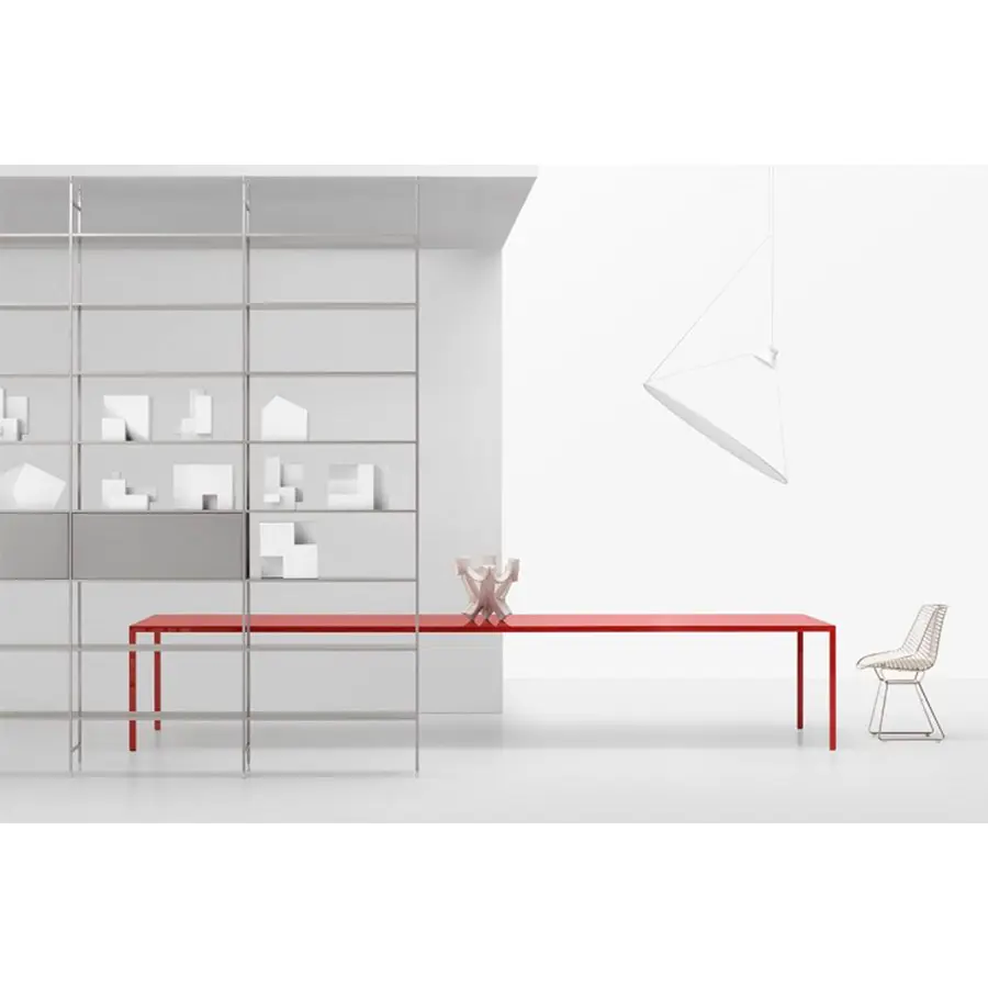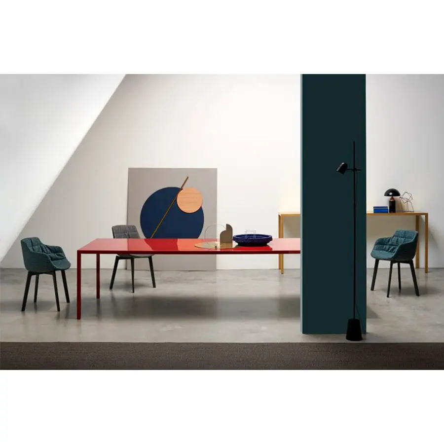 Está inspirado en la antigua técnica de la laca china, un proceso que implica la elaboración manual del color y la siguiente aplicación de varias capas de poliéster transparente, que hacen que la superficie sea lisa y brillante, capaz de reflejar la luz y animar la mesa. El tablero de la mesa presenta un juego de sombras que genera un efecto de lente que mejora el color y la profundidad. Tense Diamond se adapta a cualquier habitación de la casa, desde la sala de estar hasta el comedor, aportando personalidad a los espacios.
