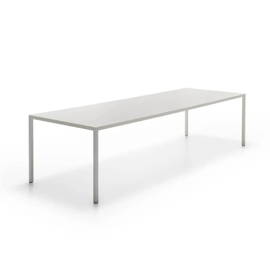 Encimera de mármol, se desarrolla a partir de polvo de mármol que, mezclado con un aglutinante, se extiende manualmente sobre todo el tablero de la mesa. El resultado es una superficie sólida y compacta. El mármol reconstruido conserva todas las características del material original, con el beneficio de hacer que toda la estructura sea más ligera. Disponible en dos variantes, ébano negro y Carrara blanca.