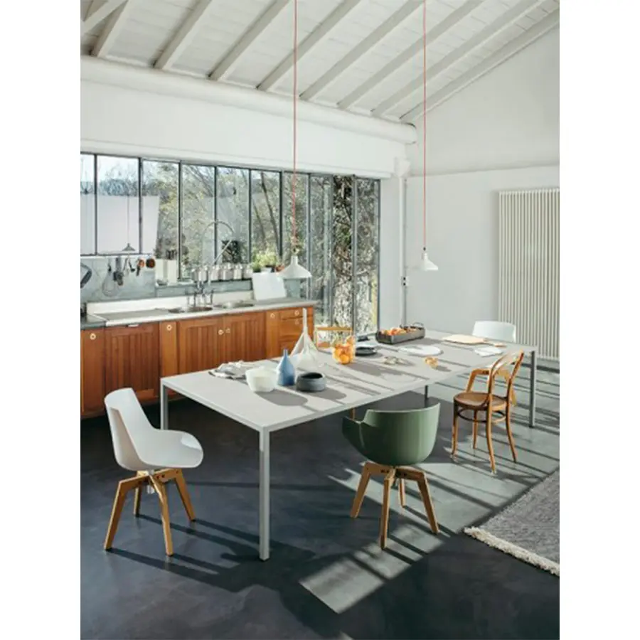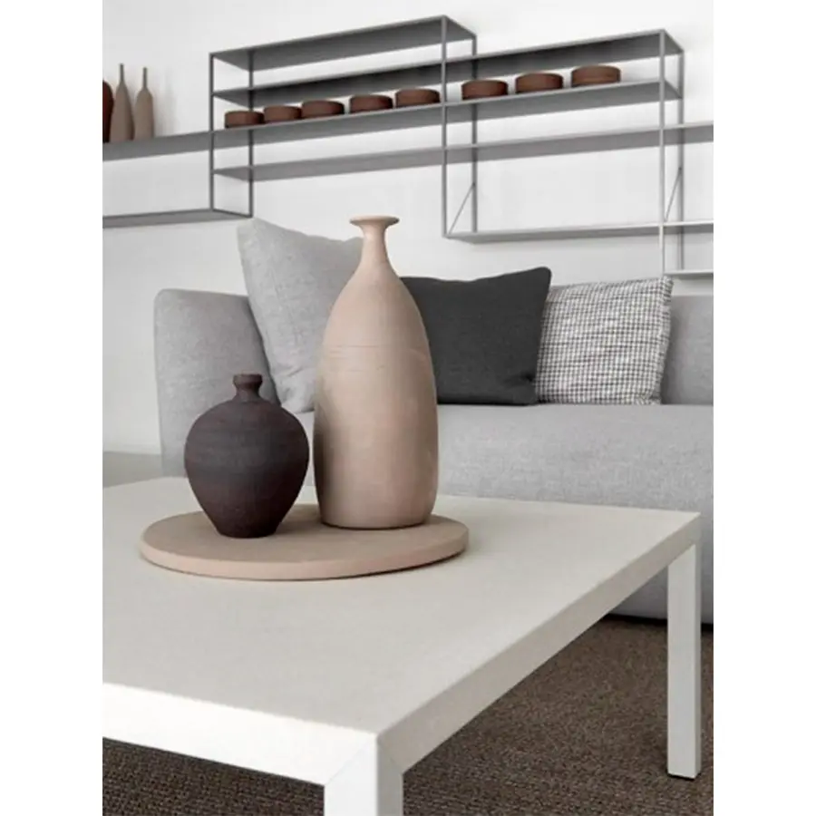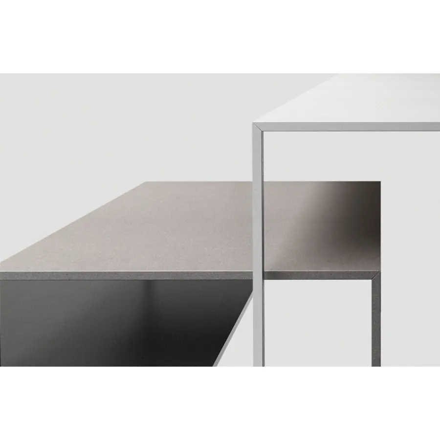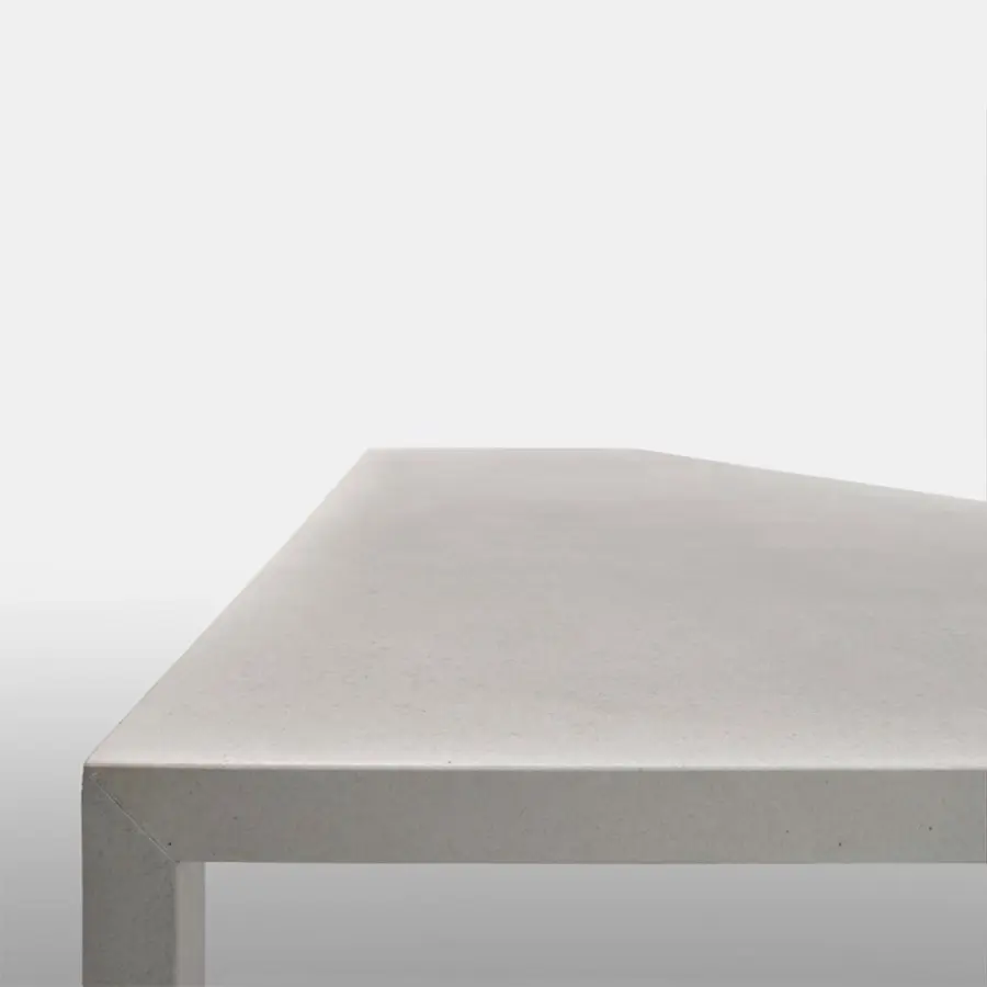 Encimera de piedra: su superficie natural y lisa presenta tonos irregulares, típicos de las piedras sedimentarias. La aplicación hecha a mano de esta mezcla hace que cada mesa sea diferente de la otra, además de original y única. El estilo industrial y al mismo tiempo natural de este acabado se adapta a diferentes contextos: desde salas de estar minimalistas y contemporáneas hasta comedores clásicos.