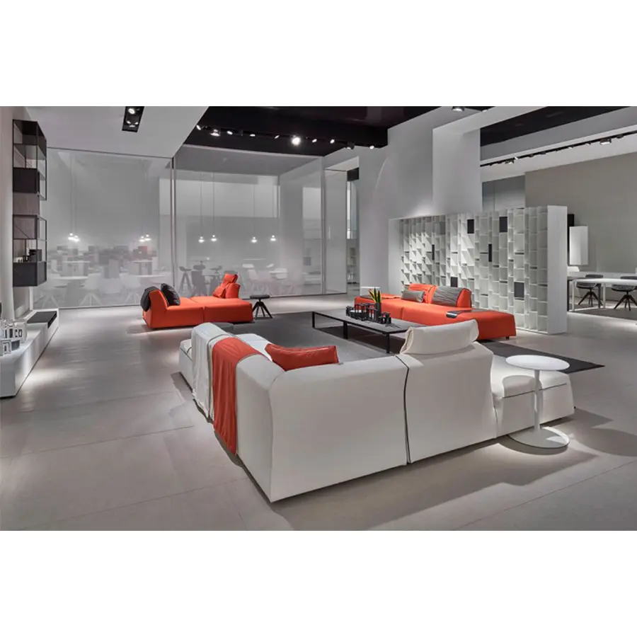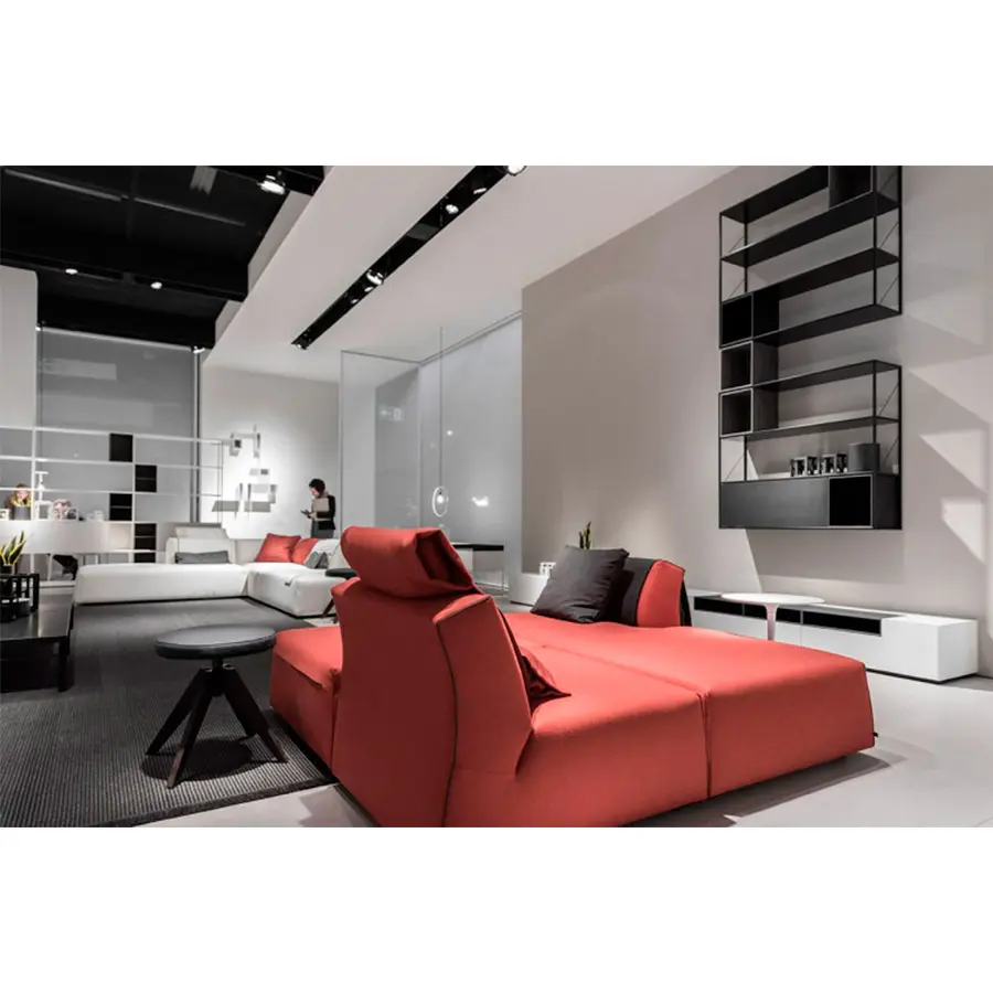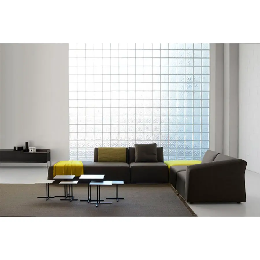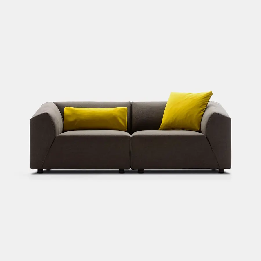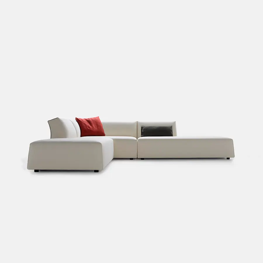 Thea, el nuevo sistema tapizado, se origina en la interpretación femenina de las formas y en el equilibrio de las pautas en aparente antítesis: cómodo, acogedor, ordenado, dinámico, riguroso, ligero, altamente compacto. El eclecticismo de Thea reside en la investigación armoniosa de diferentes puntos de vista: frontalmente ortogonal, inclinado hacia los lados y cóncavo en la parte posterior. El sofá es muy original y dinámico solo porque fusiona todos estos idiomas: es un juego de proyecciones y formas que le da a su diseño un signo único y reconocible.