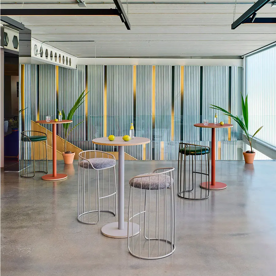 El taburete Tonella, al igual que el resto de piezas de la familia Tonella, usa el tonel usa el elemento inspirador, si bien, en esta ocasión, Note ha llevado al límite este elemento común, pues las varillas metálicas adquieren en el taburete mucho más protagonismo que en sus predecesores.