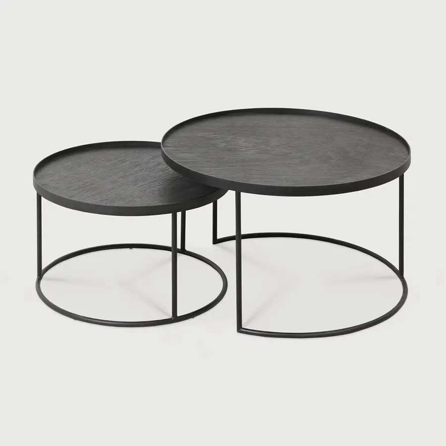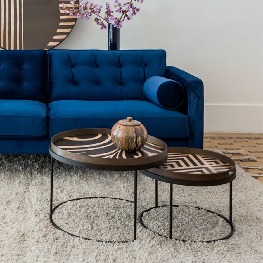 La mesa de bandejas es una de nuestras piezas más versátiles: si bien cumple su función de mesa auxiliar, su capacidad para adoptar diferentes bandejas le permite mezclar o combinar varios colores y patrones, creando una pieza adaptada a la personalidad y exclusivamente suya. Por supuesto, el conjunto de mesas nidos genera el doble de diversión y creatividad.