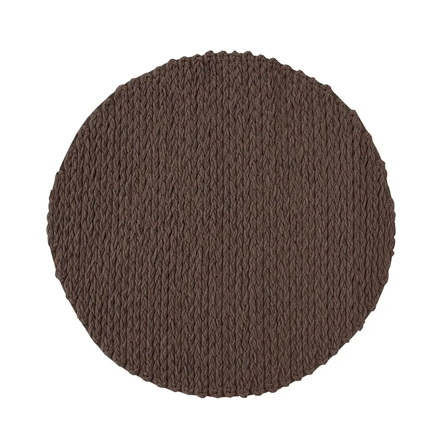 Esta es la alfombra redonda de nuestra colección Trenzas, un diseño que también está disponible en tono crudo o marrón. Su trenzado de lana gruesa es una bucólica alusión al aparente entrelazado de las espigas silvestres. Con esta voluminosa textura en color marrón grisáceo, la colección busca transmitir una atmósfera natural y rústica de estilo contemporáneo. Es una pieza de grandes dimensiones, que mide 225 cm de diámetro.