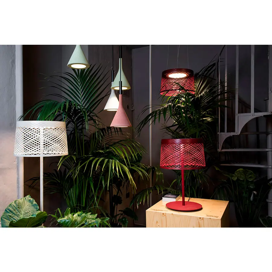 La pasión de Foscarini y Marc Sadler por la investigación de las nuevas tecnologías ha dado vida a proyectos muy icónicos, como Twiggy, poste con forma de arco en material compuesto sobre base de fibra de vidrio esmaltado. Para el uso en exteriores el proyecto fue completamente rediseñado en la parte técnica de la iluminación y en la estética del difusor, que en la versión exterior de Grid es entrelazado. Las versiones de lectura y de mesa resaltan por su exitosa síntesis entre la sencillez de la forma y la marcada personalidad: tienen el mismo difusor y la misma base del poste, pero el asta se desarrolla en vertical.