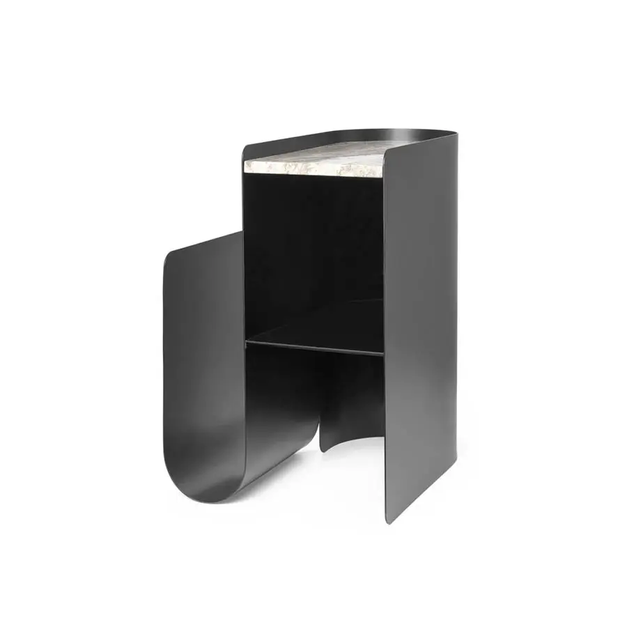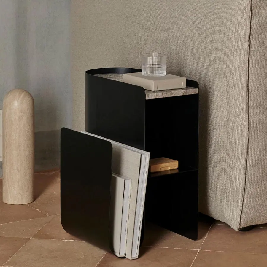 Bien equilibrada y sofisticada, la Mesa Auxiliar Vault une acero elegante con recubrimiento en polvo y una superficie de mármol natural. Combinando varios elementos en una pieza coherente, la mesa cuenta con una unidad lateral para exhibir libros y revistas, una estantería interna y una superficie de mármol contrastante. Audaz y versátil, la mesa Vault es ideal como mesa de noche, colocada junto a un sofá o utilizada como una alternativa moderna para almacenamiento.