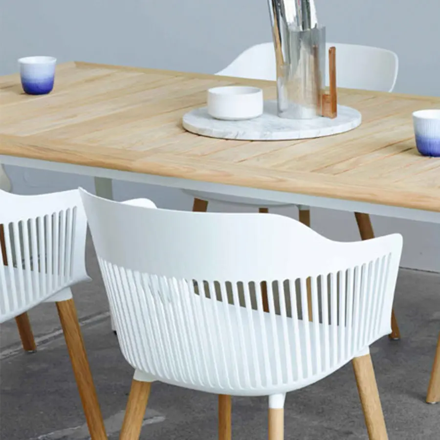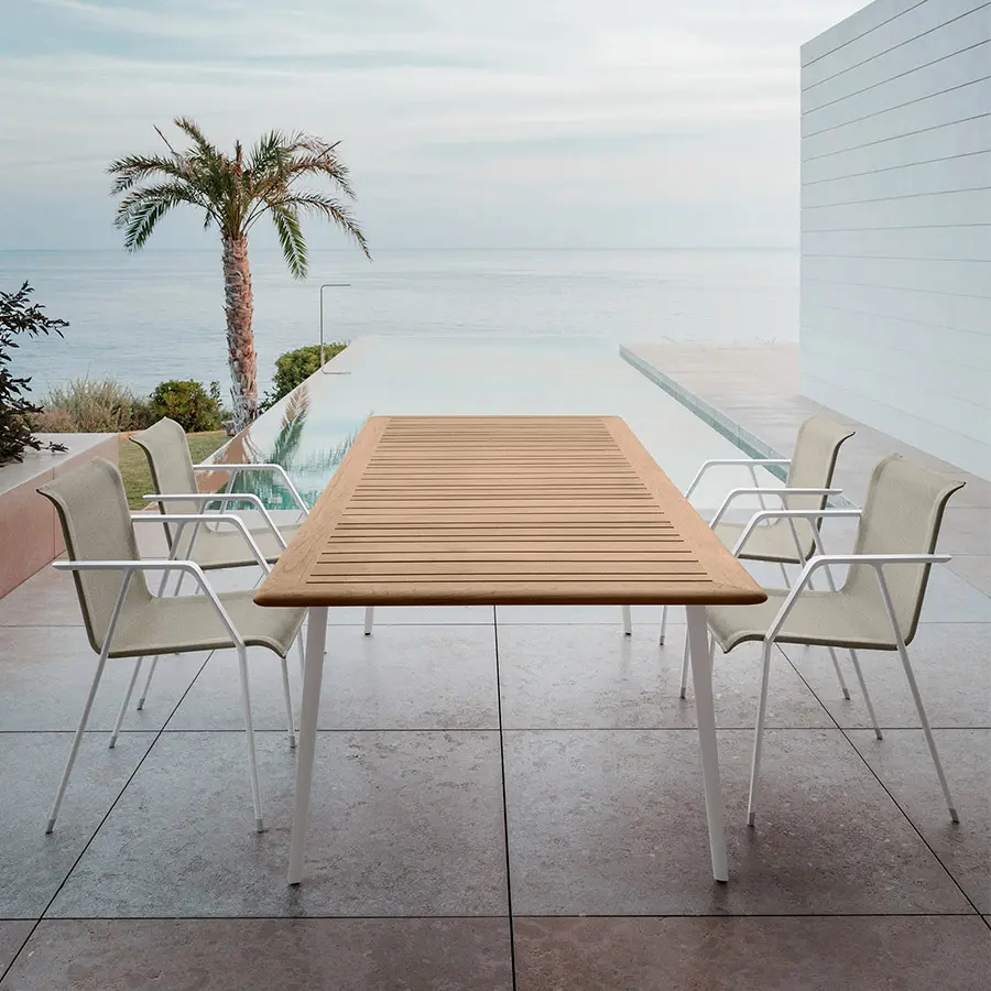 La espectacular interacción de ángulos y curvas le confiere a la colección de comedor WA ese perfil único «fluido»: esbelto, ágil, musculoso, como si estuviera en movimiento. Un triunfo de la ingeniería: tras dos años de desarrollo, WA tiene el sello personal de su creador, Toan Nguyen, un diseñador reconocido por su dominio técnico y su refinada sensibilidad contemporánea.