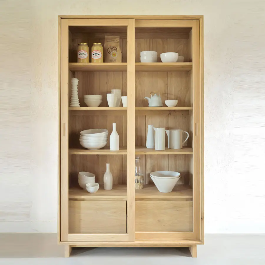 Los contornos sutiles de las puertas de la vitrina Wave y la forma distinguida del zócalo son los que hacen que esta colección sea tan especial. Fabricado en madera maciza, las puertas y cajones de este mueble de almacenamiento no tienen riradores y cuentan con un mecanismo de cierre suave.