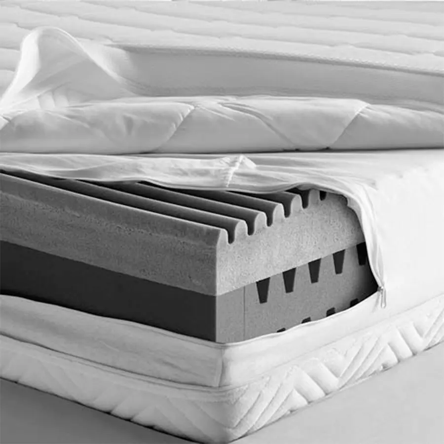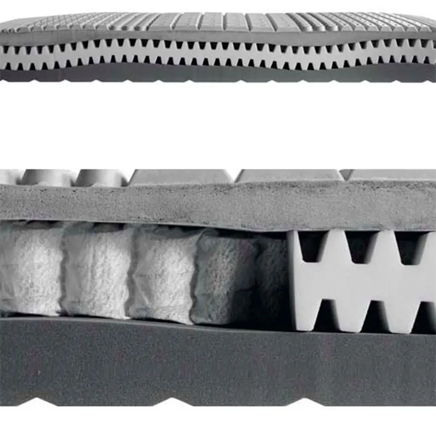 1ª capa: bloque ergonómico en PCM viscoelástico termorregulador con 7 zonas moldeadas con dibujo ondulado anatómico.