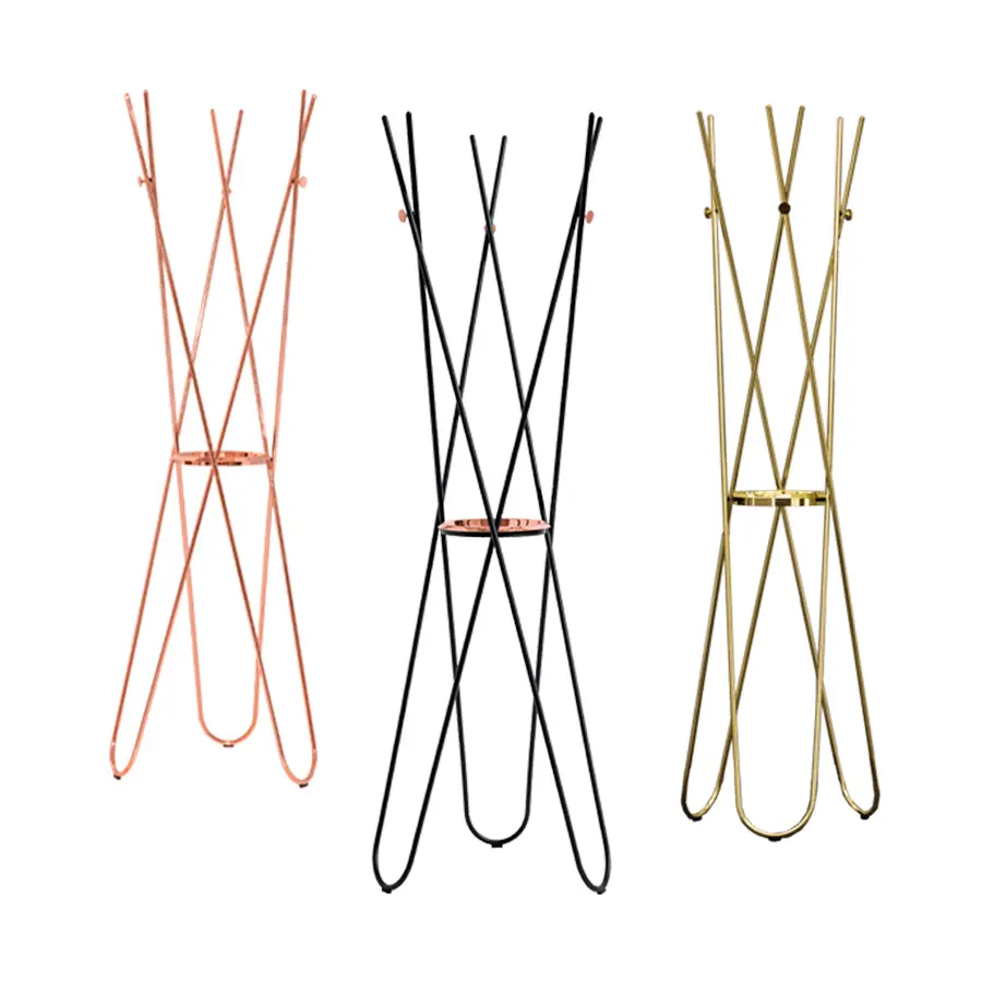 Wdrobe es un perchero de metal. Es un ícono del minimalismo y funcionalidad gracias a su práctica bandeja de monedas. Estructura y accesorios en metal doblado disponibles en latón pulido, cobre pulido o acabado en relieve negro.