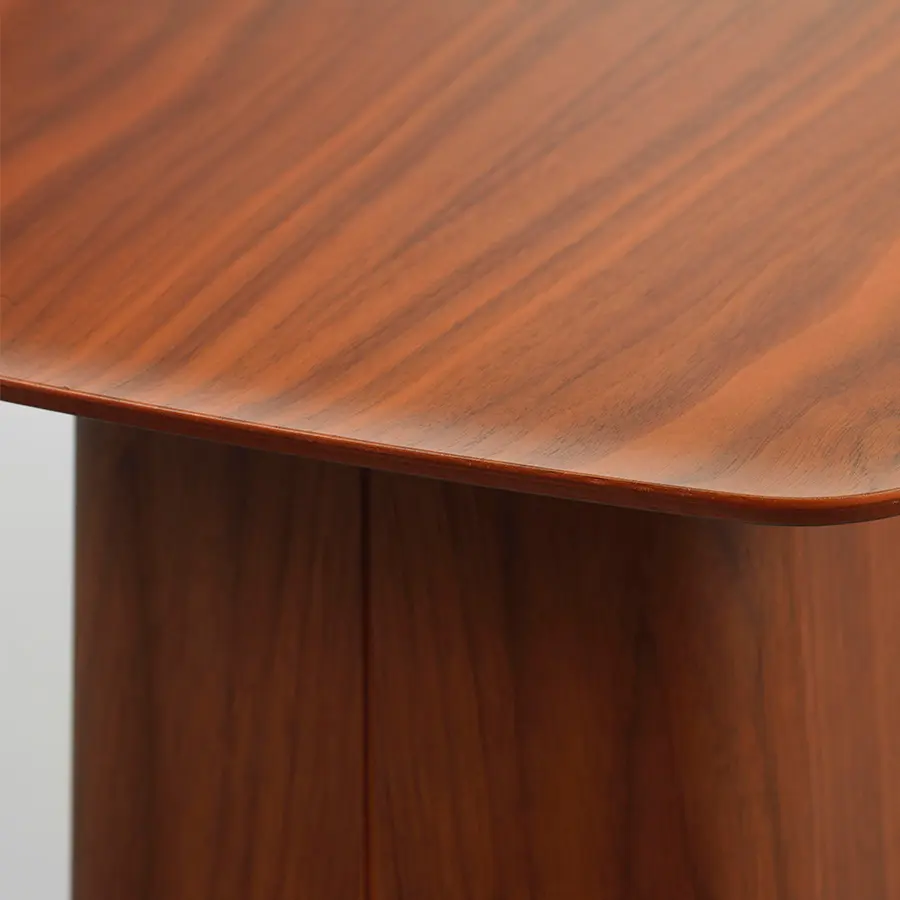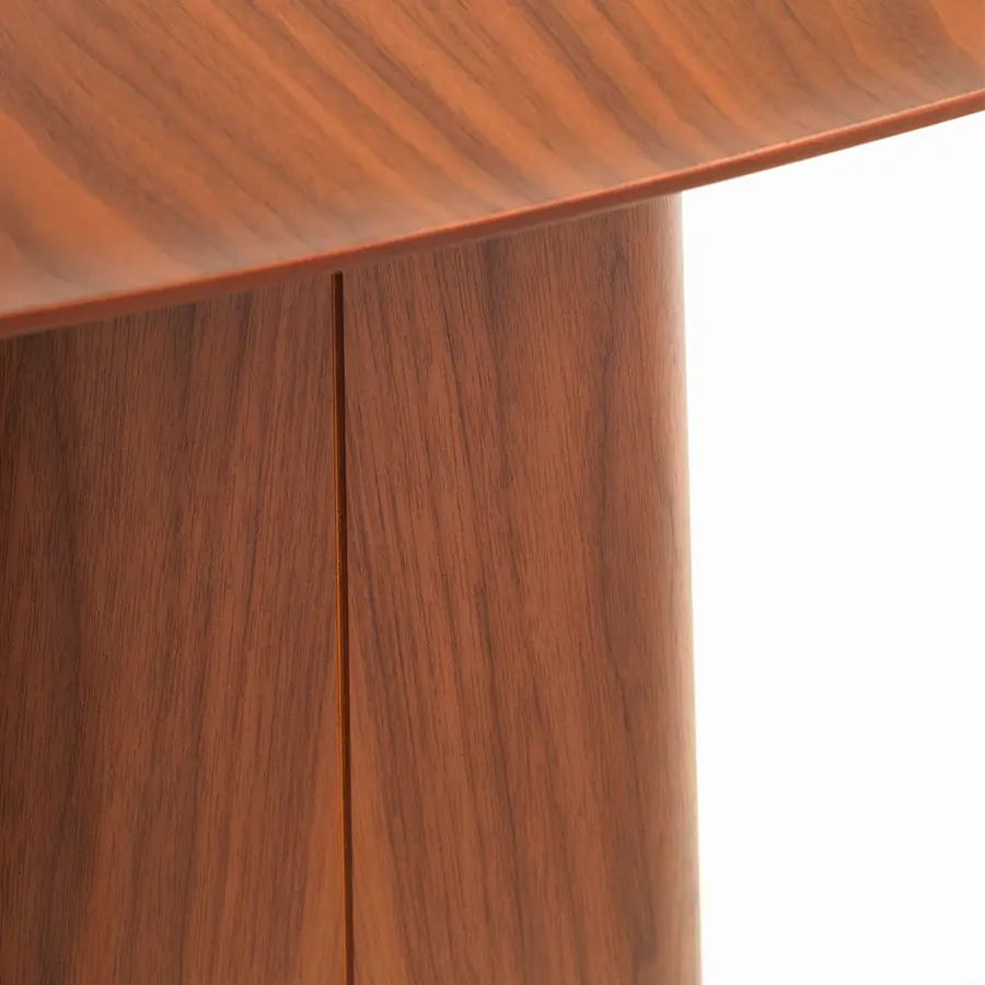 El diseño de las Wooden Side Tables se corresponde con el de las Metal Side Tables creadas para Vitra por Ronan y Erwan Bouroullec en el año 2004. Al igual que sucede con sus hermanas, el atractivo de estas mesas auxiliares de madera radica en el contraste entre la finura de los tableros y el rotundo aspecto de su base en forma de pedestal. Una de sus características diferenciadoras es que los extremos de los tableros están suavemente moldeados, formando un ligero reborde que les confiere un elegante aire japonés.