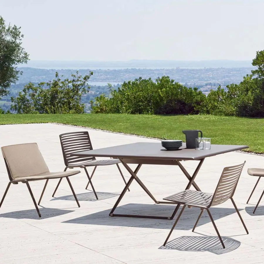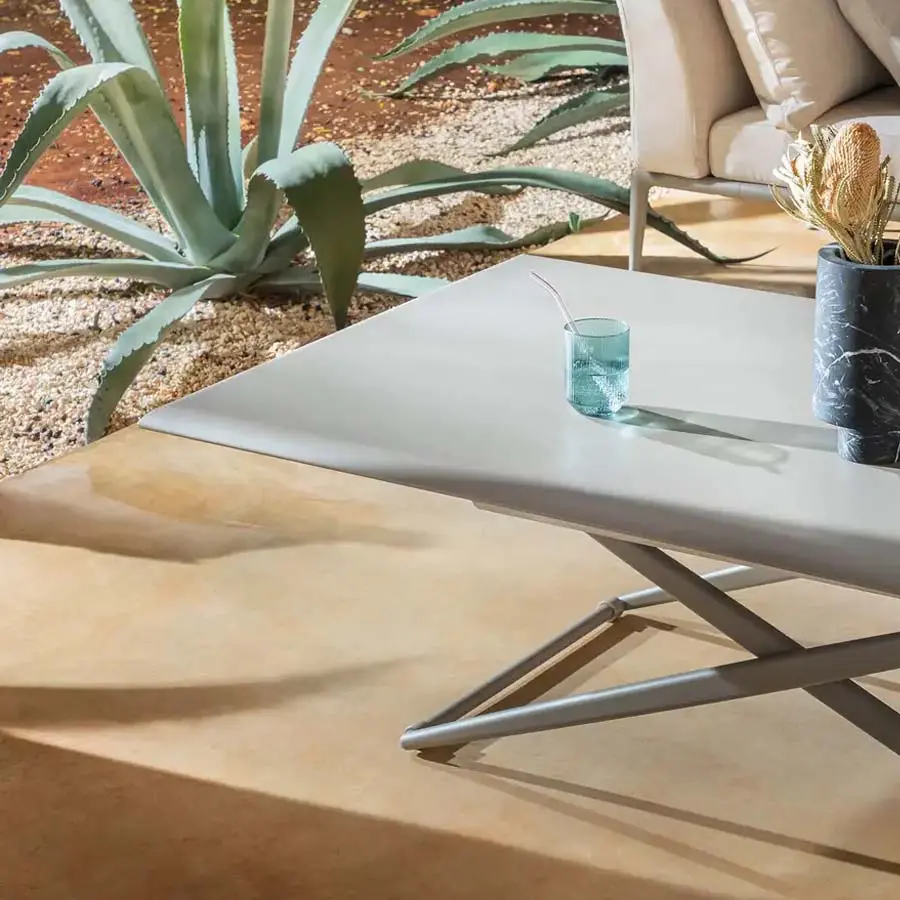 La mesa elevable Zebra rectangular cuenta con tres alturas regulables y está fabricada en aluminio pintado en 14 colores. También disponible con tapa de aluminio moteado. Base sobre ruedas. Realizada en aluminio inyectado, la colección Zebra aúna la solidez del material con el peso ligero de las formas.